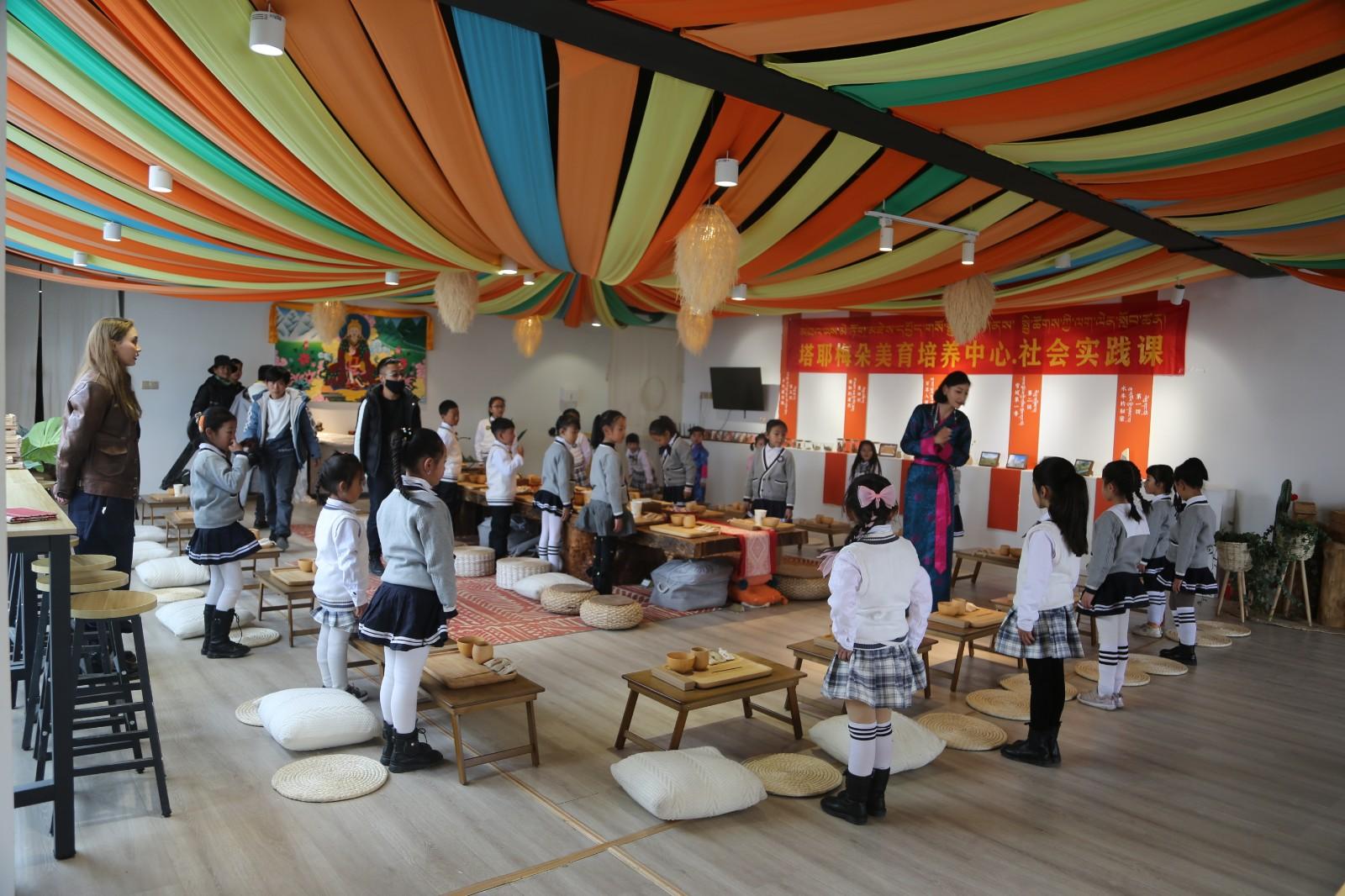 走进位于万达广场金街的塔耶梅朵美育培养中心,浓郁的艺术气息扑面而来。图为洛桑卓玛给孩子们上社会实践课。