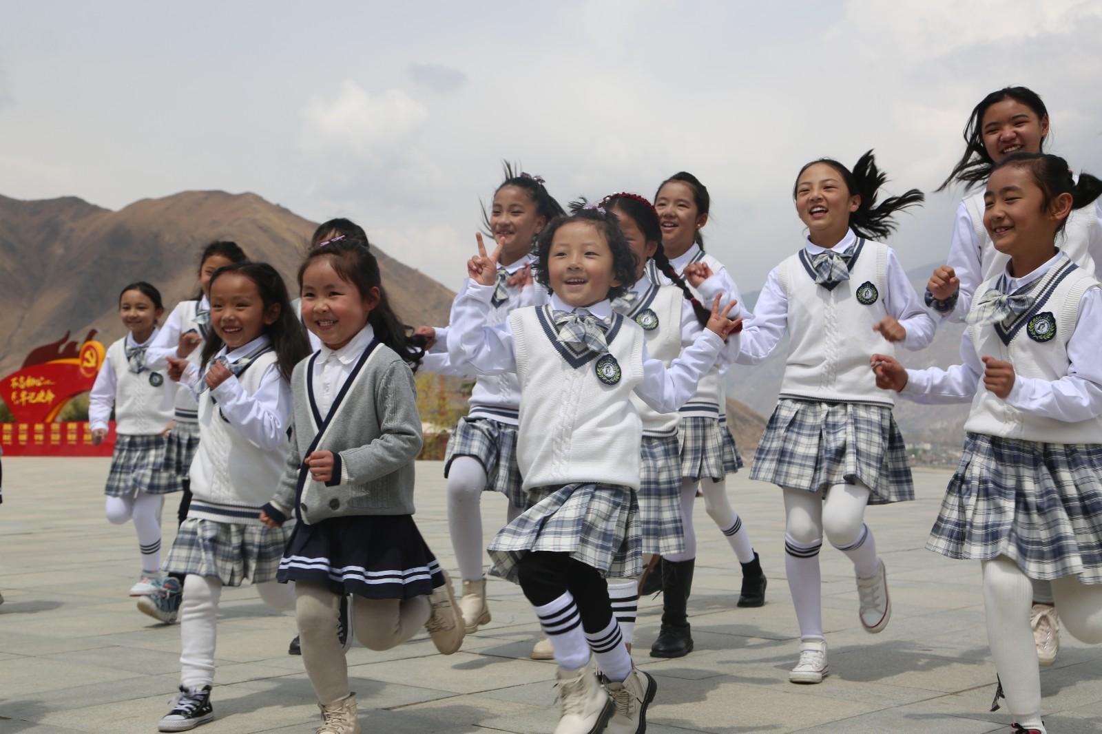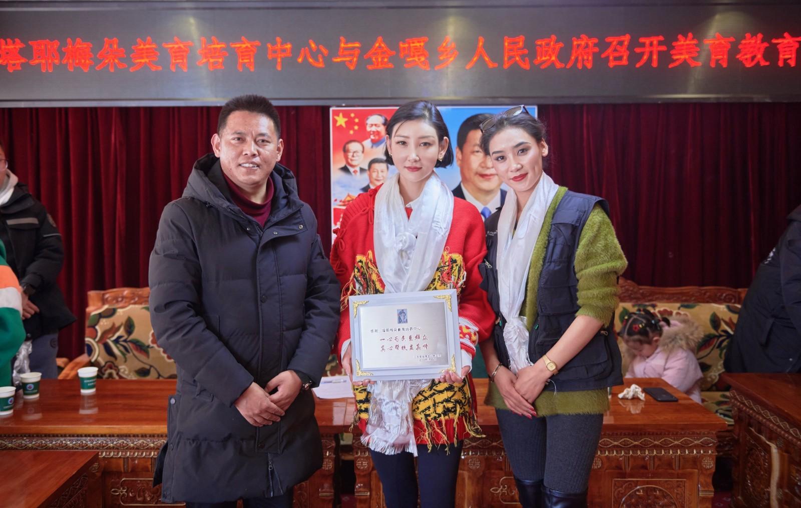 2017年,90后的拉萨姑娘洛桑卓玛创办了西藏首家专业少儿模特礼仪培训中心,让更多人通过童模看到了西藏文化的魅力和风采。图为洛桑卓玛(中)带领团队前往日喀则市江孜县金嘎乡开展美育公益活动。