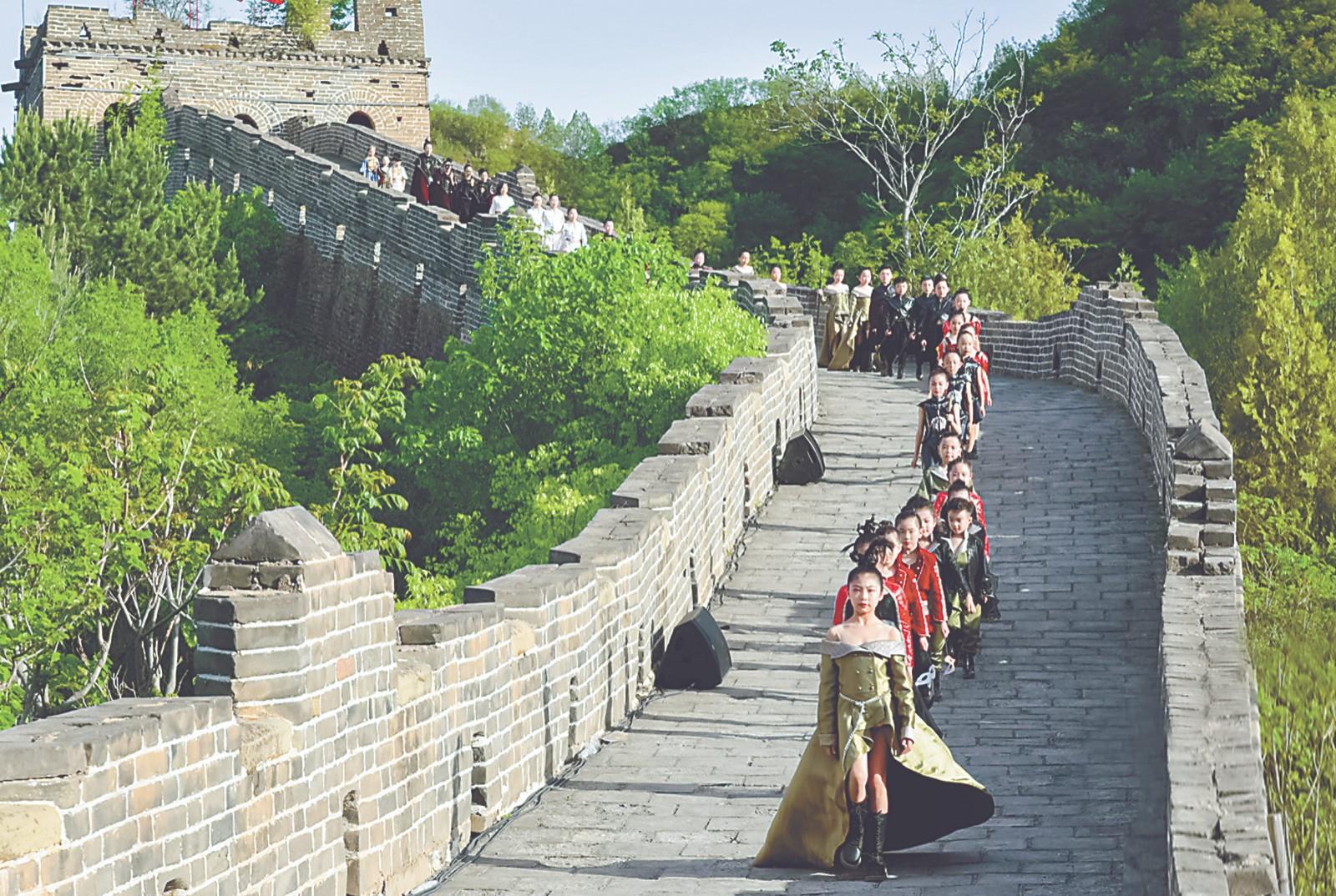 塔耶梅朵美育培养中心开拓了西藏少儿美育教育的载体,将少儿形体模特礼仪教育带入西藏,在西藏走出了一条以少儿模特为内容的美育之路。图为塔耶梅朵美育培养中心的学员们在长城上走秀。