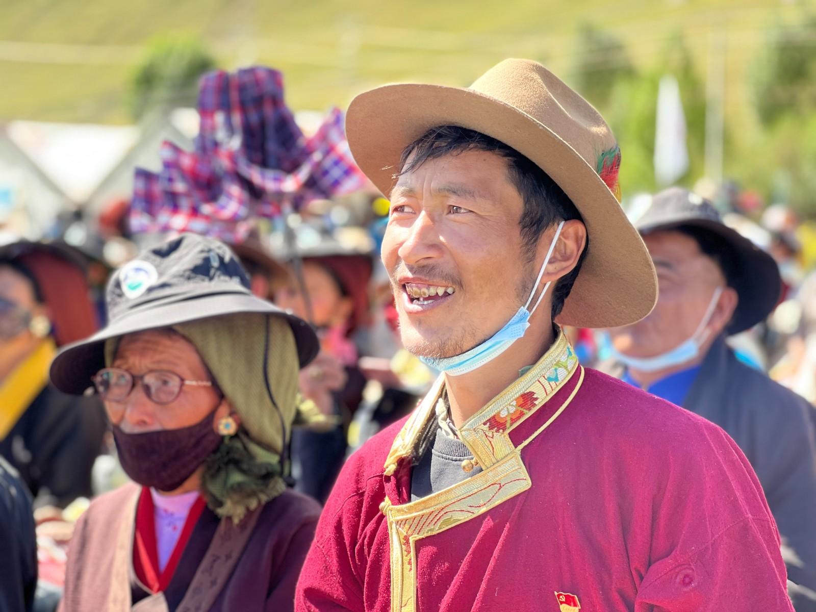 墨竹工卡,藏语意为“墨竹思金龙王居住的地方”,地处雅鲁藏布江中游、拉萨河中上游。这里是吐蕃政权的肇始之地,流传着松赞干布和文成公主的故事。这里的人民勤劳、智慧、朴实,创造了光辉的民间文化,从奔放的谐钦舞蹈、普堆宣舞,到技艺精湛的唐卡、泥塑、陶瓷、藏戏面具,再到天文藏历、诗歌医典,墨竹工卡县的非物质文化遗产有55项。开幕式上,墨竹工卡县隆重推出“三色游”——红色爱国游、绿色生态游、蓝色康养游。图为开幕式现场的群众。