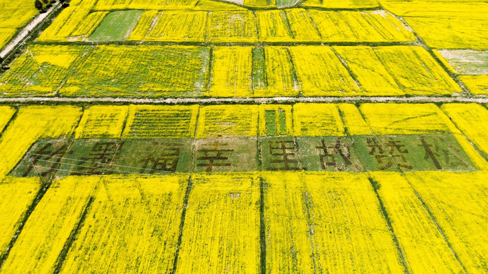 据悉,今年墨竹工卡县2022年松赞文化旅游节暨第五届油菜花节活动分为扎西岗乡主会场和嘎则新区幸福林分会场,共设置了以“油”为主题的13项子活动。开幕式上,墨竹工卡县净土公司代表与唐加乡人民政府代表进行了“小菜籽油”认购签约,墨竹工卡县净土公司代表与扎西岗乡人民政府代表进行了“小菜籽油”预售签约。图为墨竹工卡县于年初将弃置的荒地重新开垦,种植出了“松赞故里 幸福墨竹”字样的大地景观。