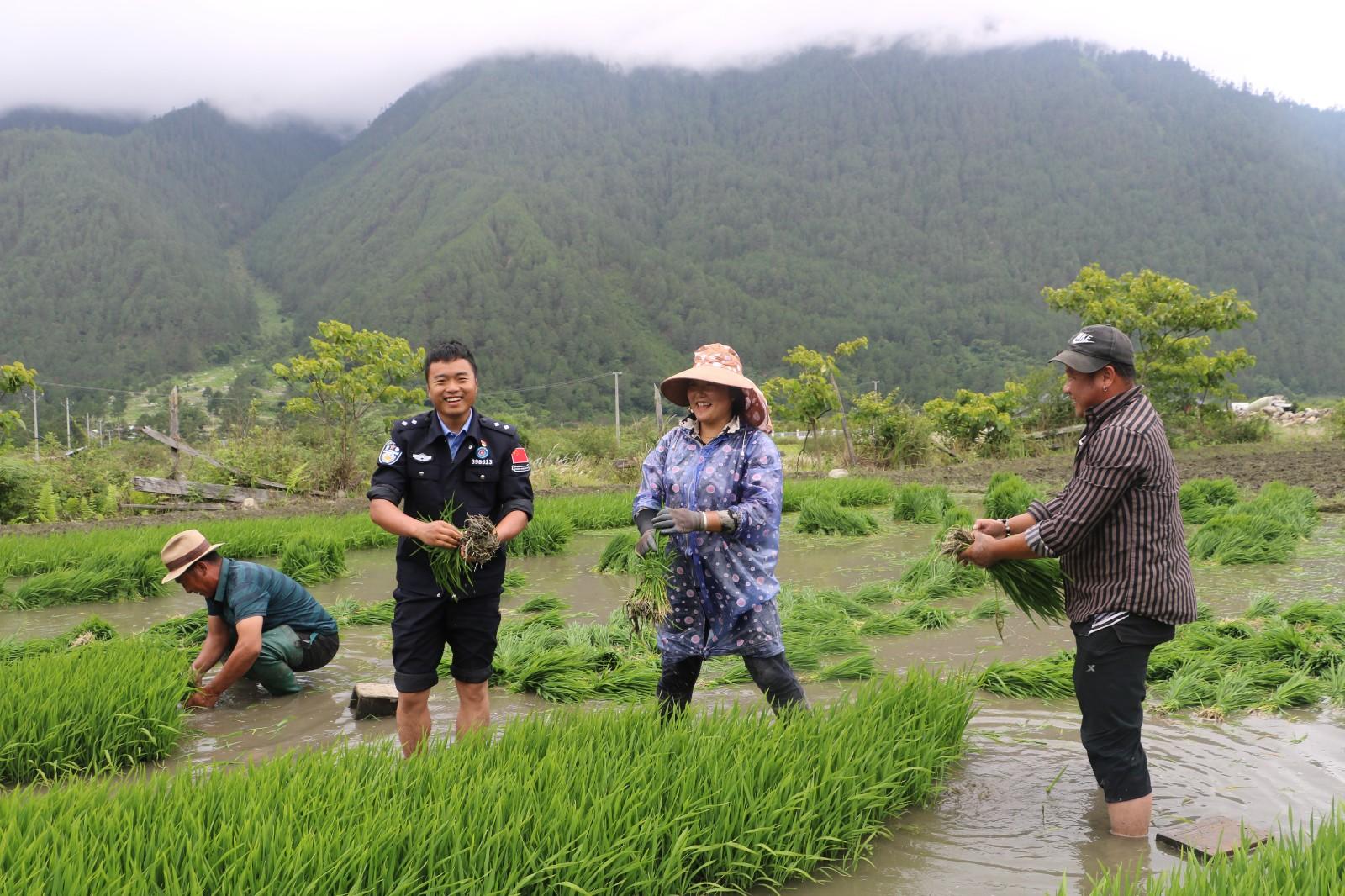 民生无小事,察隅县边境派出所民警们始终保持着情系百姓、为民办实事的理念,想群众所想、急群众所急,扎实开展“我为群众办实事”实践活动,努力提升服务群众能力和执法水平,不断提升辖区群众的满意度和安全感。图为西藏林芝边境管理支队巴安通边境派出所民警帮助辖区困难家庭干农活。