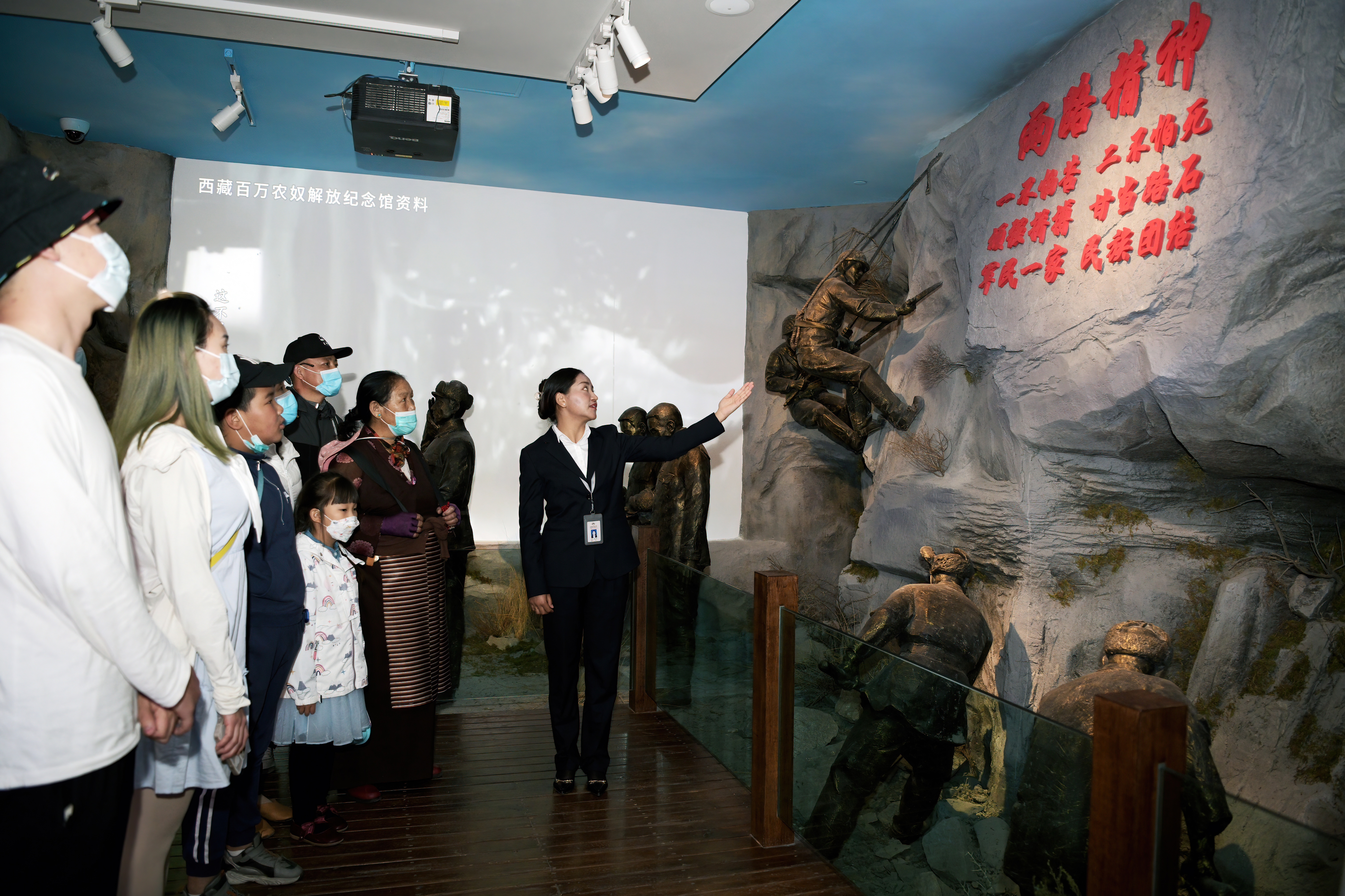 大力弘扬“两路”精神和老西藏精神,凝聚共创美好未来的强大奋进力量。图为2022年3月,西藏各族群众参观西藏百万农奴解放纪念馆。