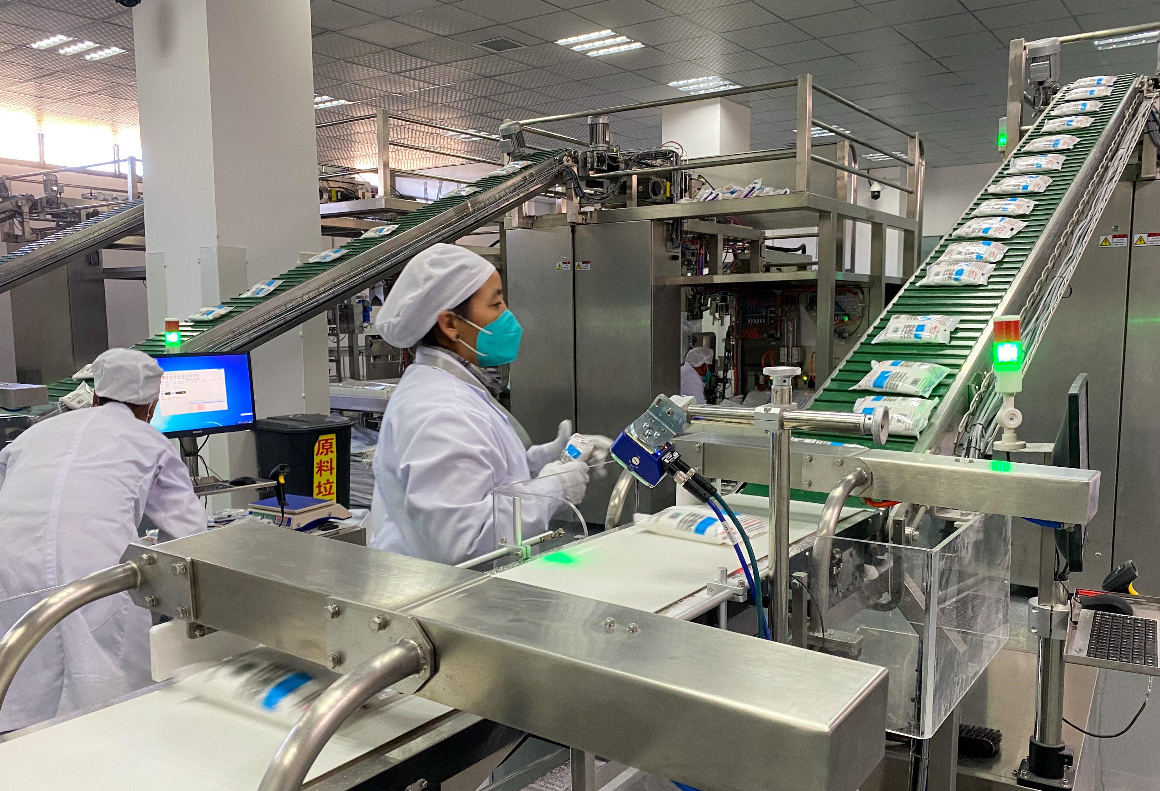 临近年终,拉萨市各企业按下“快进键”、跑出“加速度”,积极抢抓第四季度时间窗口,开足马力忙生产、赶订单,奋力冲刺全年生产目标任务。图为西藏中兴盐业有限责任公司工作人员在盐厂流水线上作业。记者 丹增群培 摄