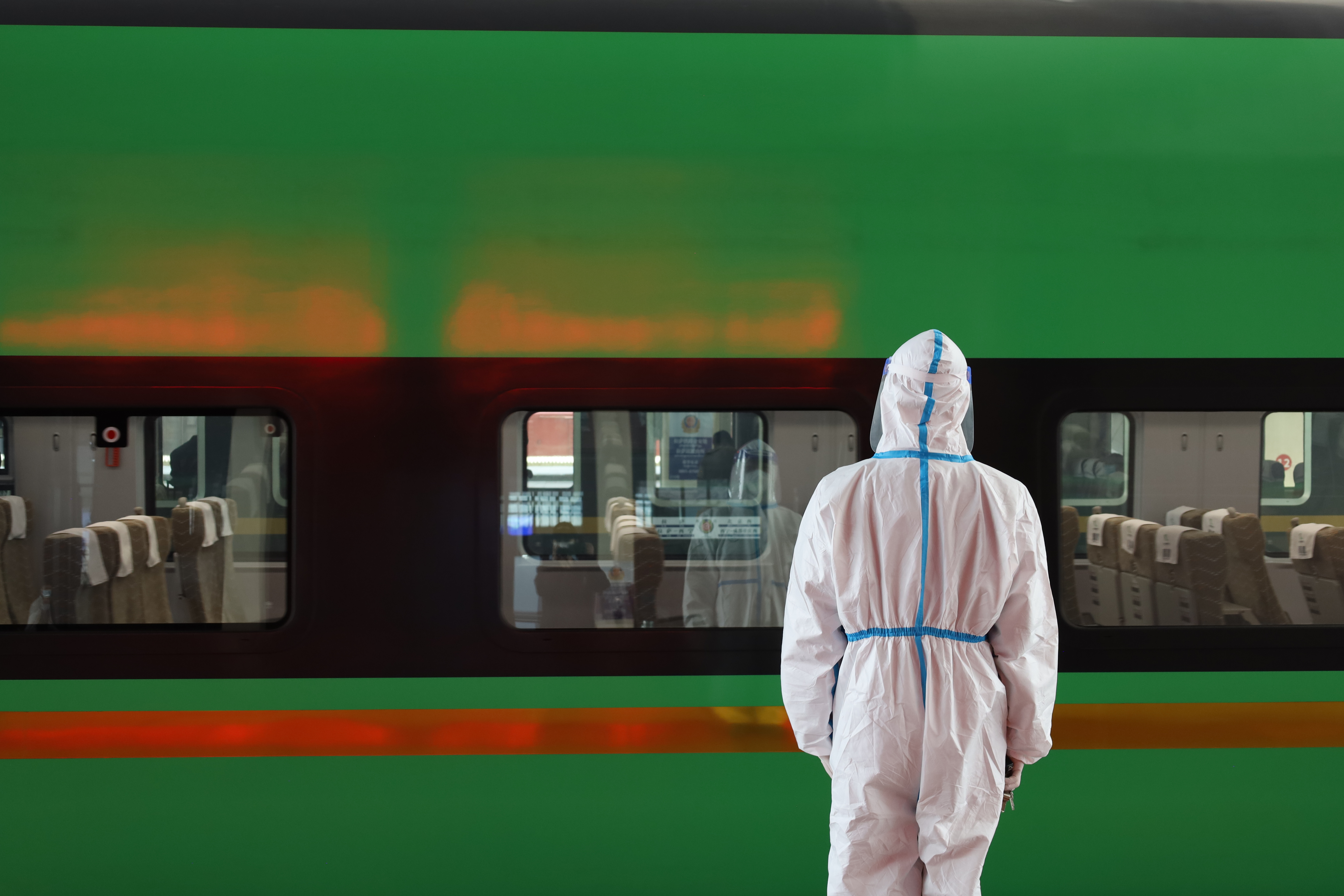 面对突如其来的新冠病毒疫情,西藏各族干部群众万众一心、众志成城,为打赢这场看不见“硝烟”的战争默默奋战在抗疫第一线!图为拉萨火车站在疫情期间高效落实防疫措施。记者 梁秦 摄