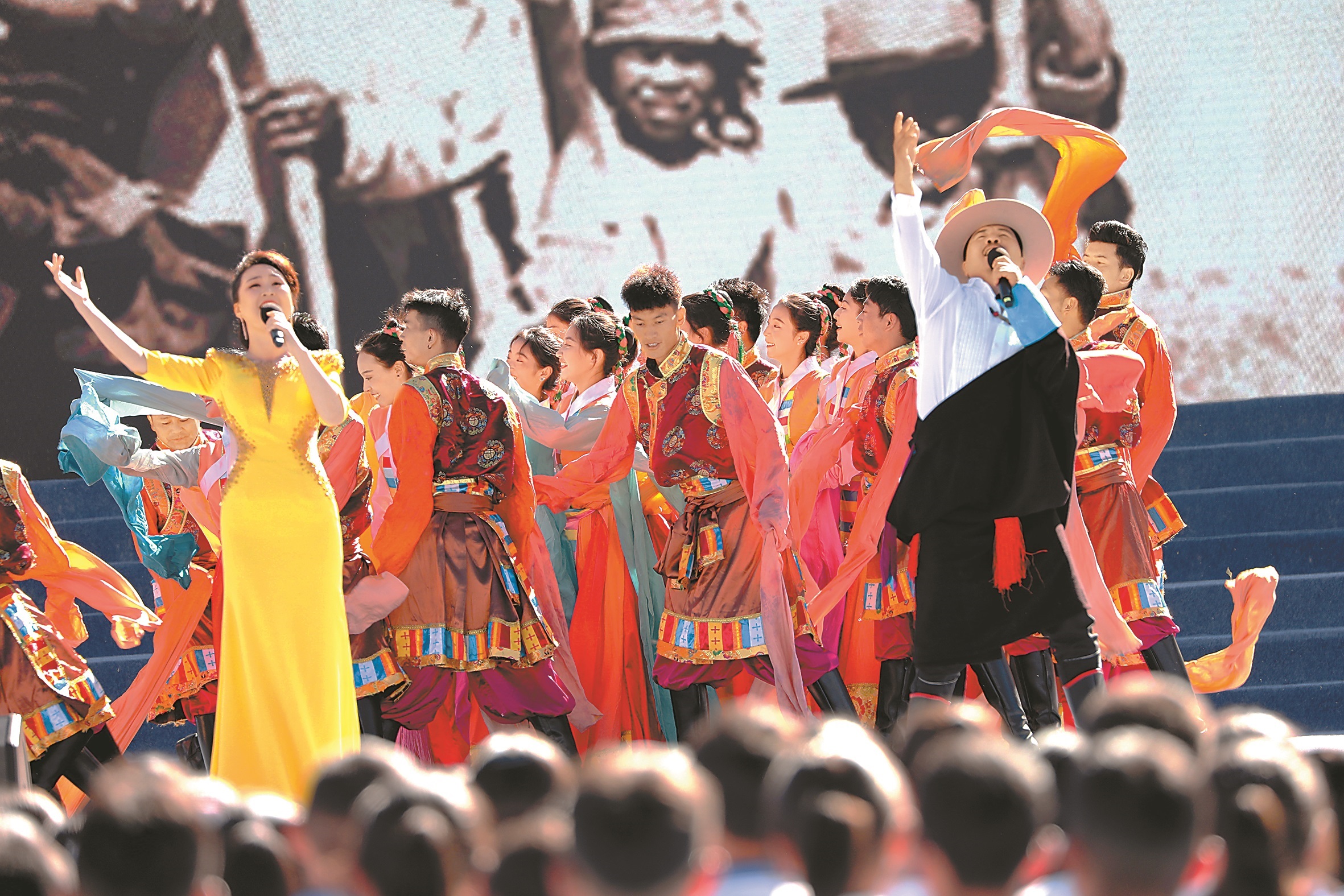 党的十八大以来,山南市坚持以人民为中心,举旗帜、聚民心、育新人、兴文化、展形象,全力创作群众喜闻乐见的艺术精品,推动文化繁荣发展,不断满足群众对美好生活的文化需要,为推动山南长治久安和高质量发展提供精神动力和文化支撑。图为山南市文艺工作者为群众献上精彩的文艺演出。记者 段敏 摄