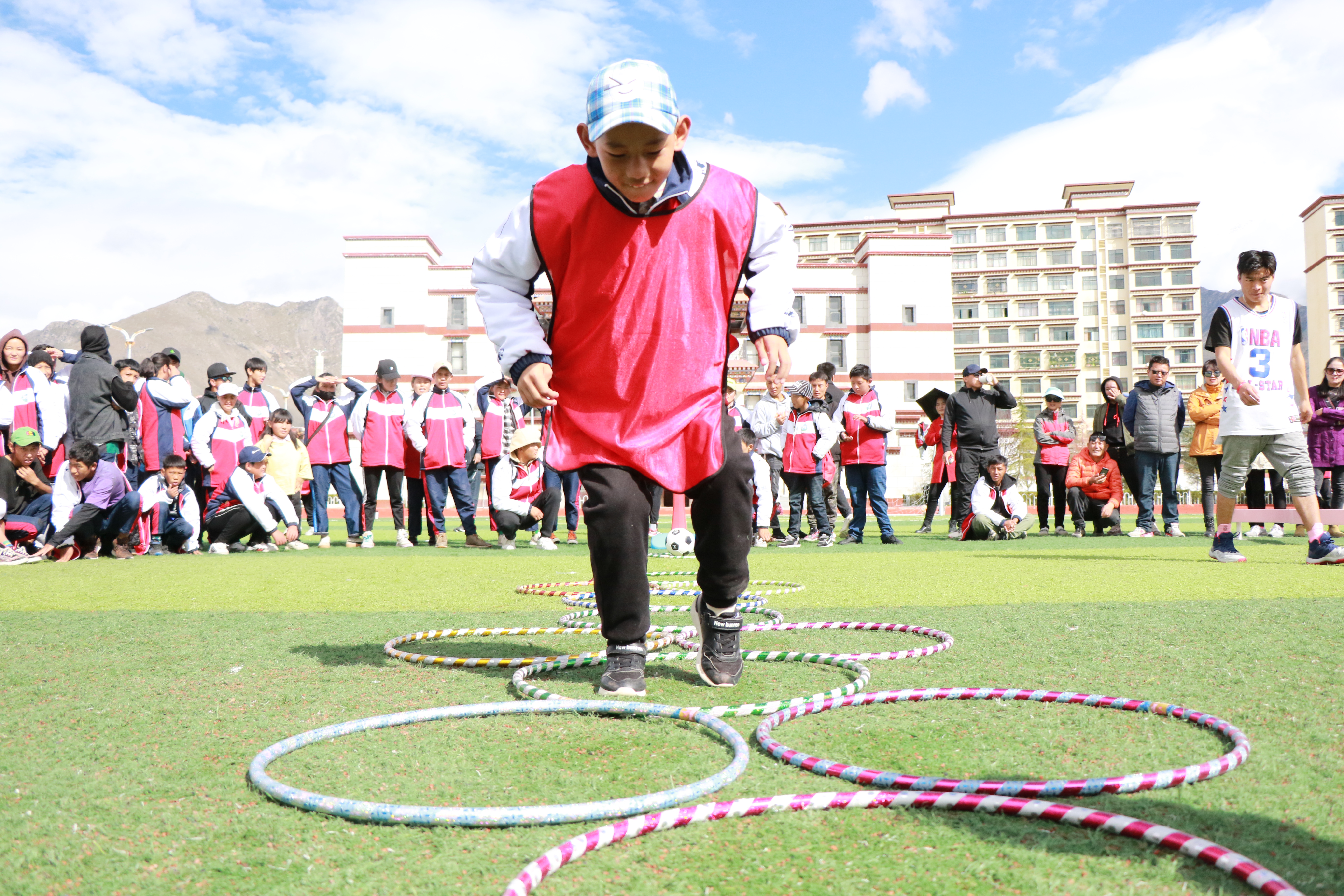 2000年12月1日,拉萨市特殊教育学校在纳金路正式挂牌成立,面向全区招生。经过20多年的发展,学校义务教育阶段现有培智、聋、盲3个教学部,职业教育开设了盲人按摩、唐卡、面点、软陶等7个专业,共有在编教职工76名、学生236名。学生学习、吃、穿、住、用、行等费用由国家承担。图为学生们在学校运动会上的风采。