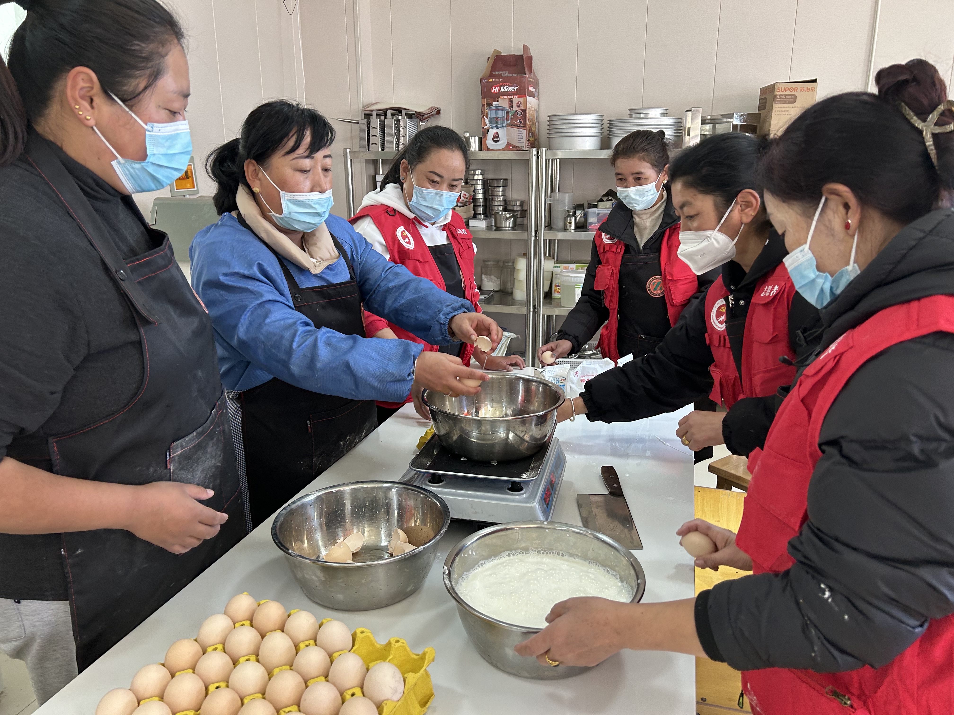 为进一步贯彻落实党的二十大精神,加强乡村振兴共同富裕人才培育,不断提高社区妇女创业创新能力,林芝市巴宜区沿河社区邀请林芝市职业技术学校的专业教师采取集中教学和个别指导相结合,通过制作甜品、糕点,向辖区女学员详细讲授怎样配料、制作、火候掌握等技术要点,并指导女学员动手制作各类糕点,学习提升厨艺技能。图为社区妇女同志们在专业教师的指点下学习制作糕点。记者 张猛 谢筱纯 摄