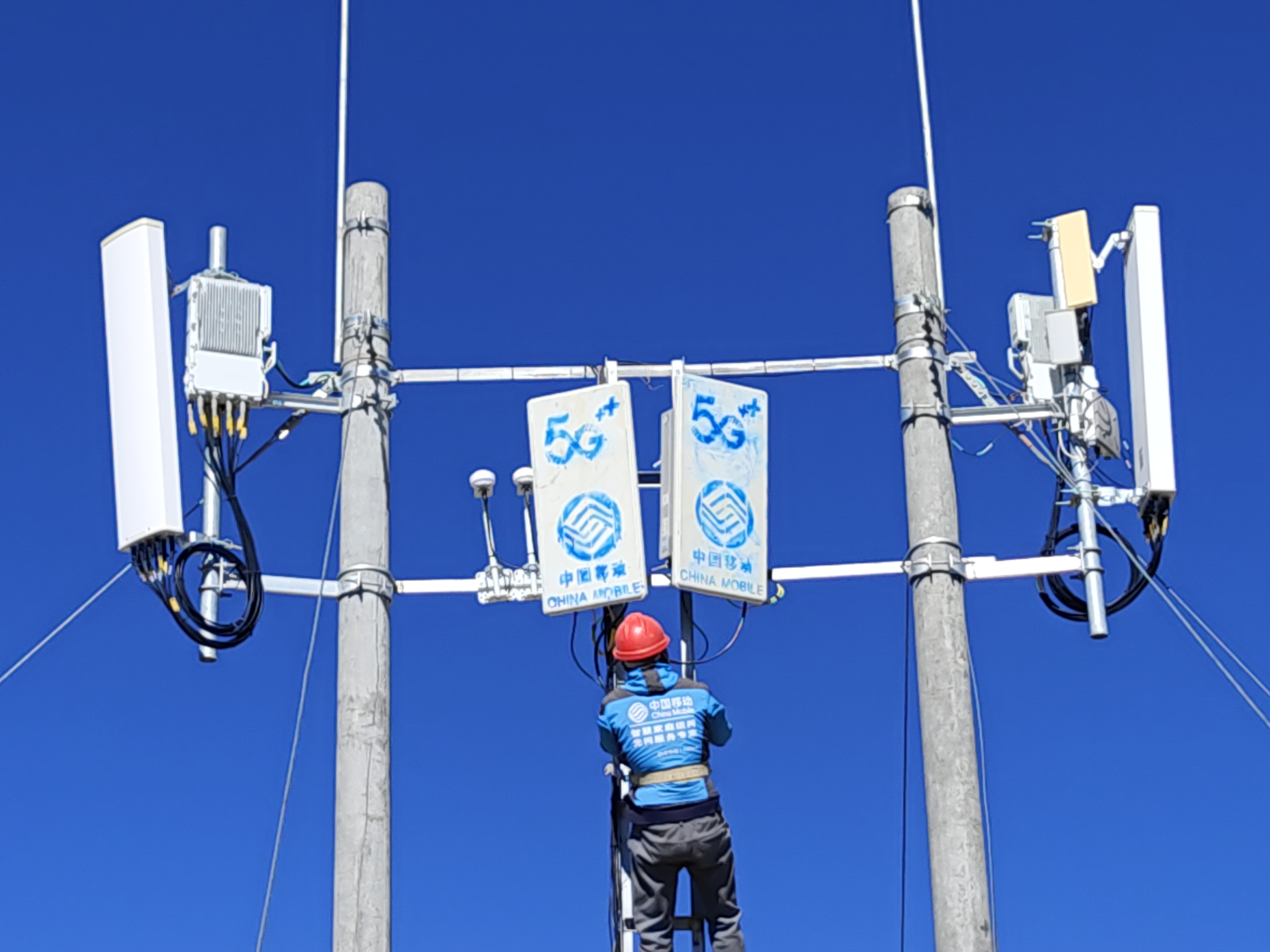 经过西藏移动山南分公司建设人员连续奋战,山南市浪卡子县普玛江塘乡成功开通5G基站,这是这个全国海拔最高乡的第一个5G基站,有效补齐了普玛江塘乡网络基础设施短板。图为西藏移动山南分公司建设人员在调测普玛江塘乡的5G基站。记者 李梅英 摄