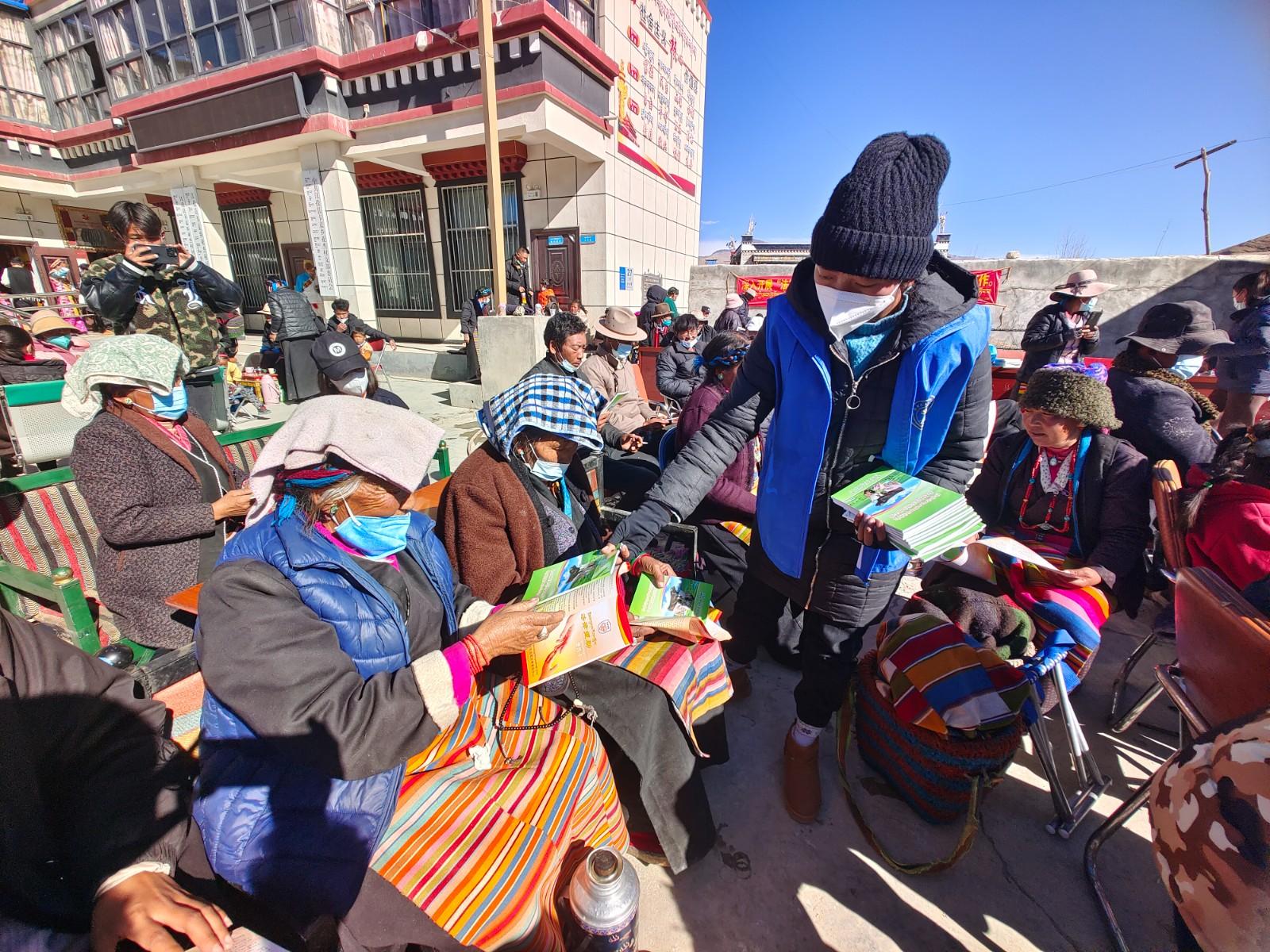 图为工作人员向群众发放宣传资料。记者 扎西顿珠 摄