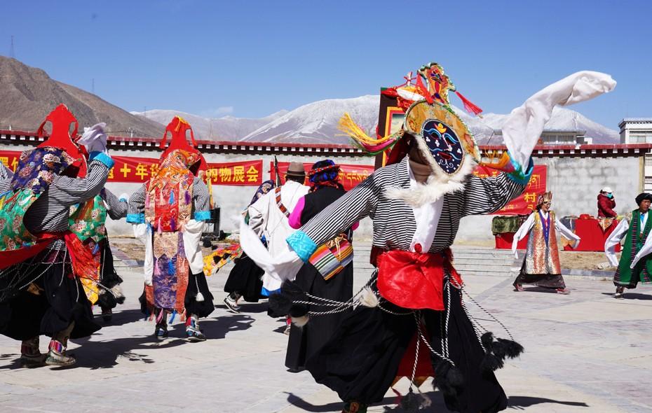藏历新年临近,拉萨市墨竹工卡县着眼农牧民群众年前购物需求,举办墨竹工卡“非遗 年货”非遗购物展会暨2023年2月非遗宣传展示展演活动,营造浓浓年味,推动文旅业复苏和非遗传承,助力乡村振兴。墨竹工卡县尼玛江热乡其马卡藏戏队表演《朗萨雯蚌》。
