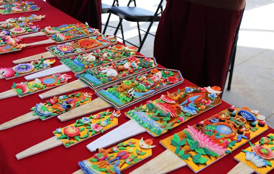 塔巴陶瓷、酥油花、达布林耐服饰、直孔氆氇、康萨家具等市县级优秀非遗项目齐聚一堂,为群众送上了一场“非遗”年货盛宴。活动上展销的酥油花。记者 格桑伦珠 摄