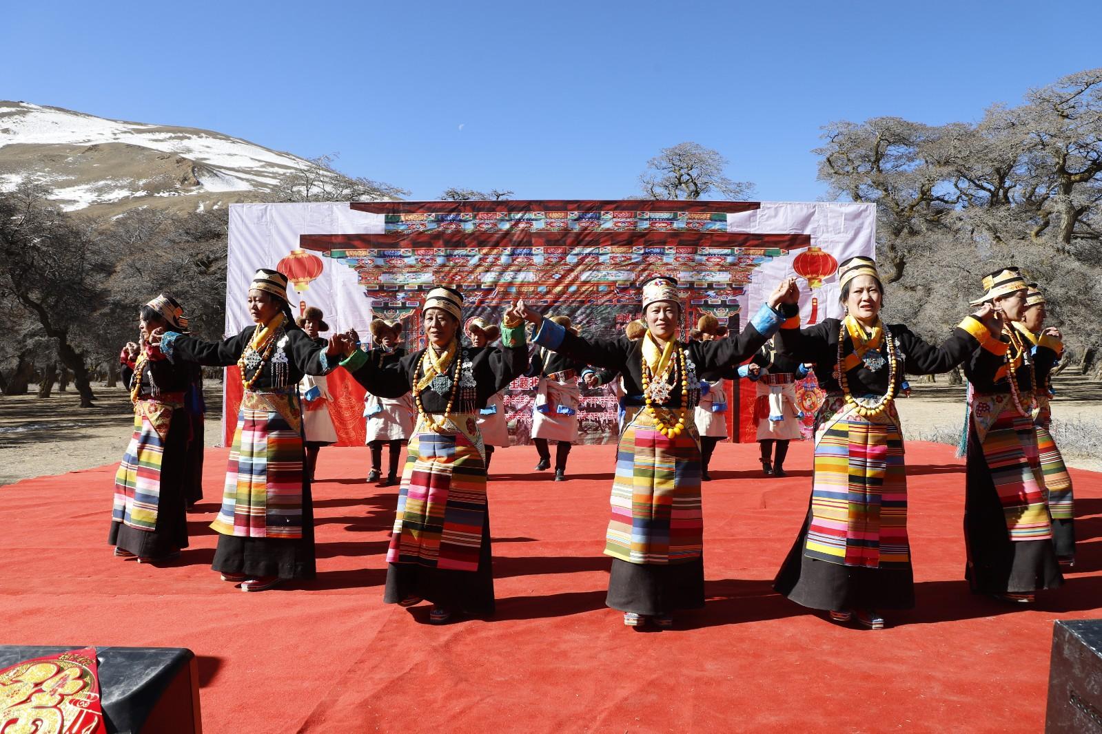 2月14日,山南市错那县举办“我们的中国梦·文化进万家”主题非遗联欢会,以非遗歌舞展会的形式欢度藏历水兔新年。国家级非物质文化遗产门巴萨玛民歌、自治区级非遗项目洞嘎达羌节达羌舞及县级非物资文化遗产项目拉热谐果、加羌姆等在联欢会上精彩上演,丰富了群众的精神文化生活。 图为非遗联欢会上鼓师在奏乐。