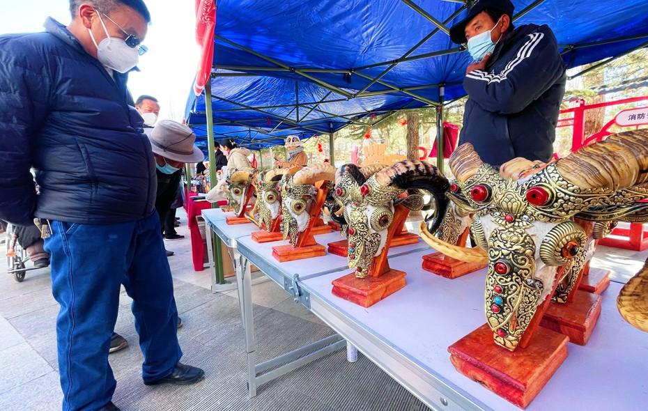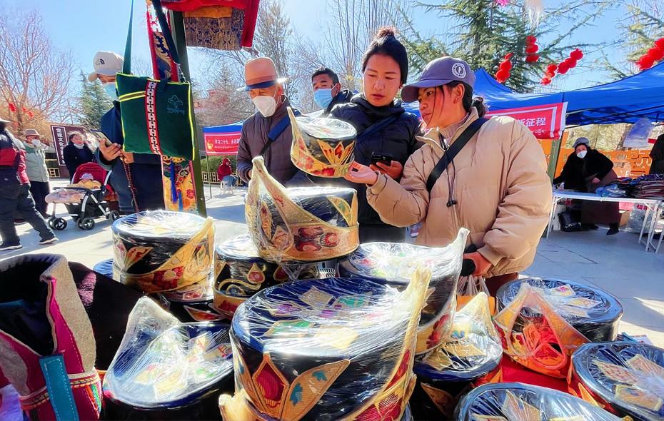 拉萨市城关区第三届“青年践行二十大,我与城关共成长”年货节现场,拉萨市民在选购年货。 记者 白玛泽旺 摄