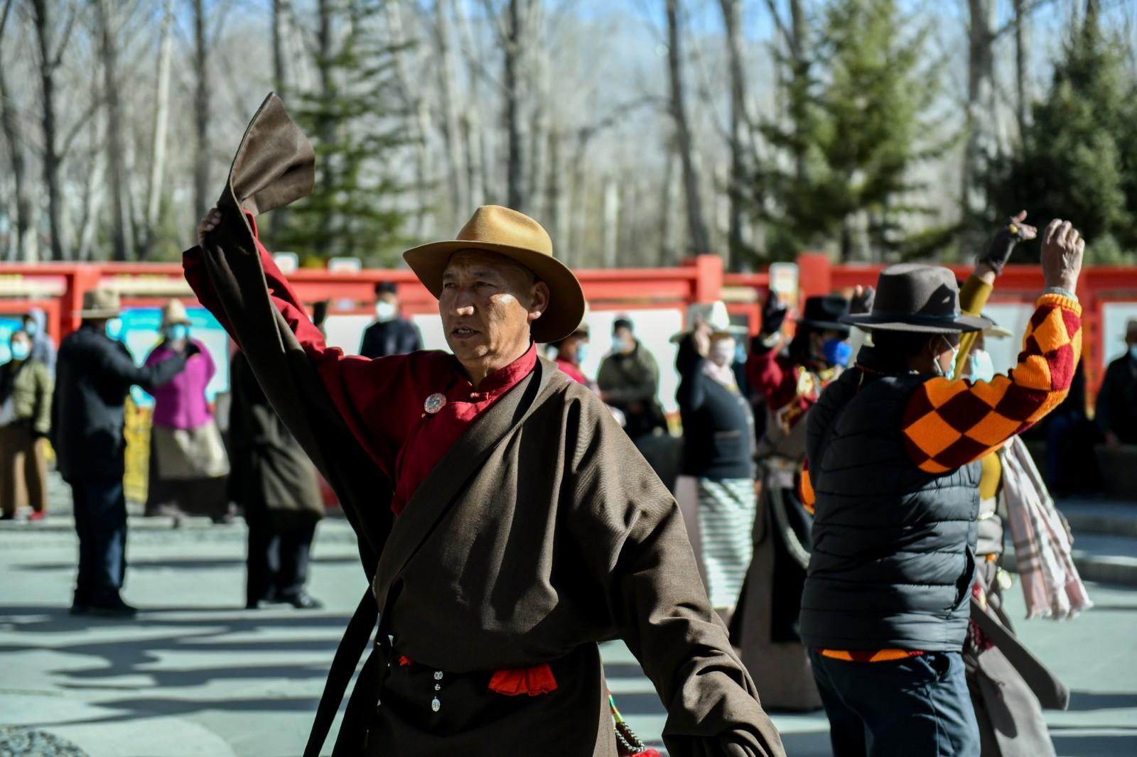 冬末春初,拉萨清晨的寒冷挡不住老百姓的热情。一大早,拉萨市宗角禄康公园迎来大批群众。记者 梁秦 摄