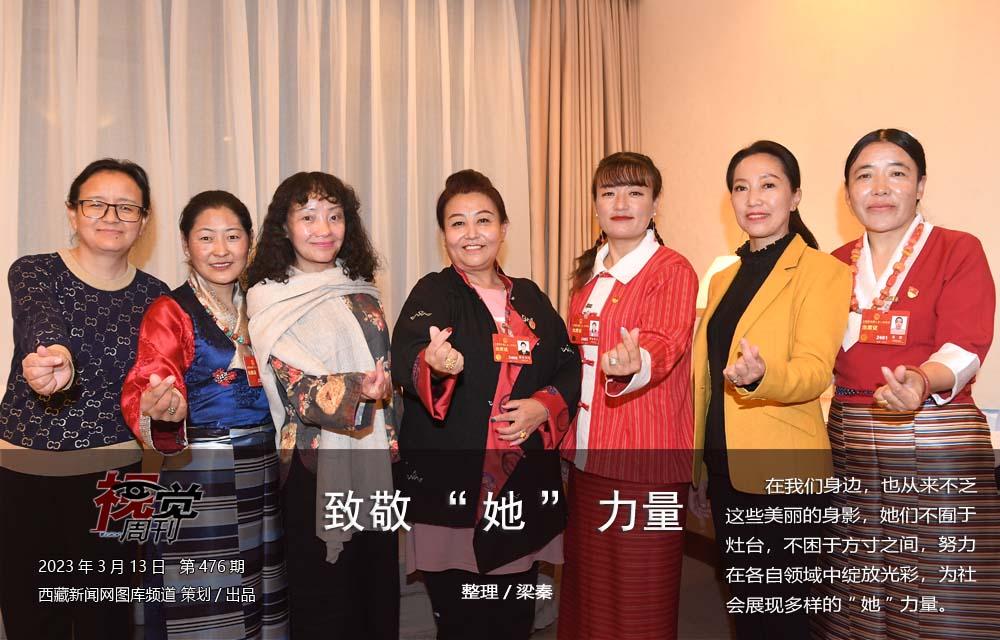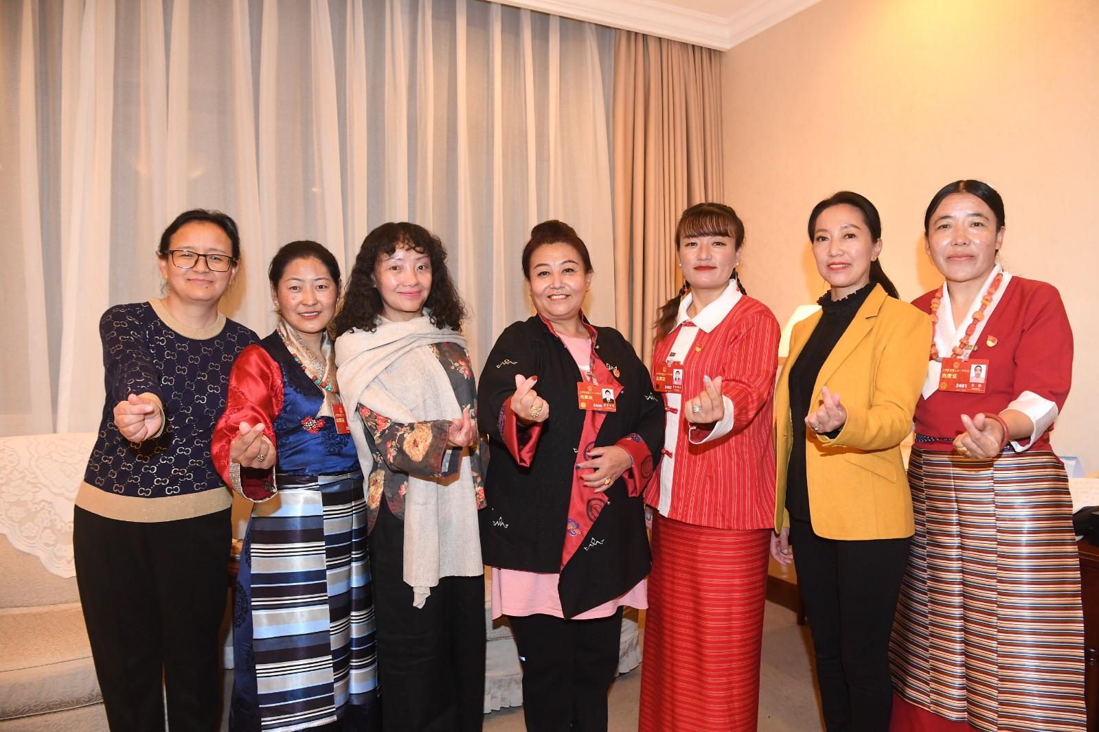 图为出席十四届全国人大一次会议的我区女性代表们比心祝福姐妹们节日快乐。 西藏日报记者 李洲 摄