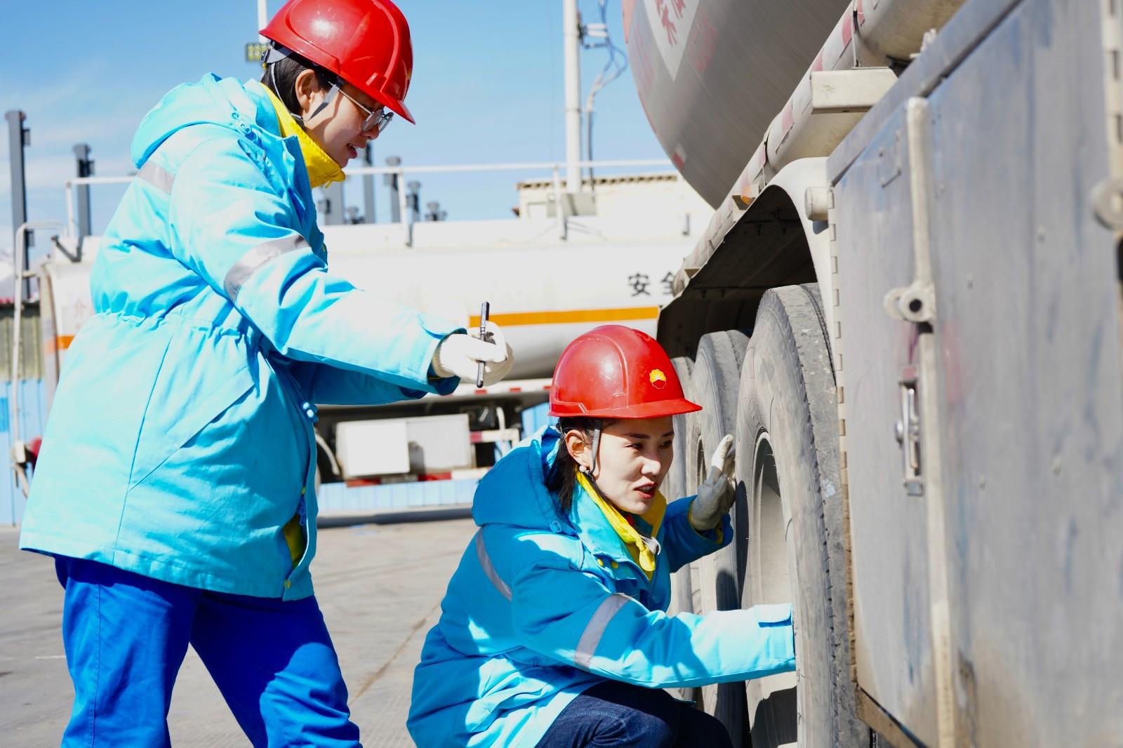 她们与时代同发展,与西藏共奋进,她们积极投身经济社会发展的火热实践,成为推动西藏经济社会高质量发展的强大力量。图为中国石油运输西藏分公司女员工在养护车辆。记者 次仁平措 摄