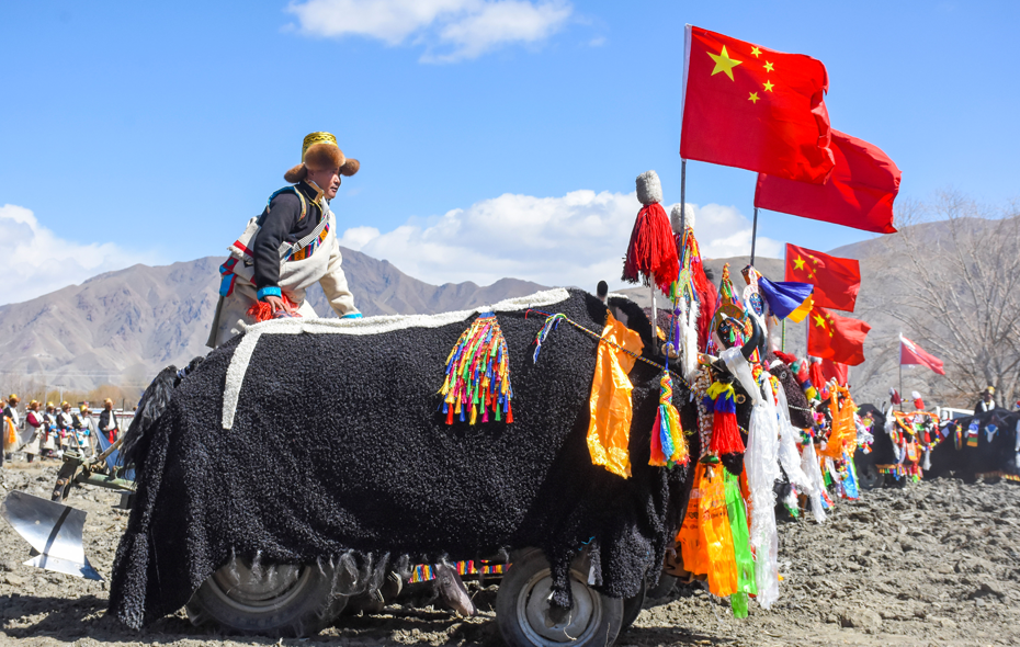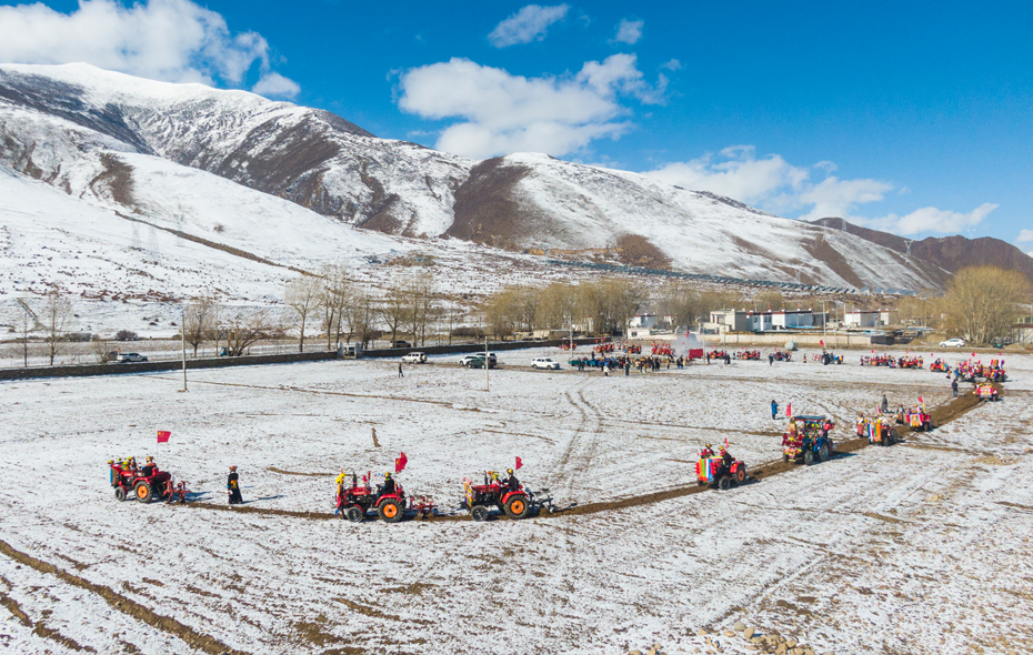 大地回春,农事渐起。眼下正是春耕生产的重要时节,西藏各地有序推进春耕生产,到处是一片热闹繁忙的景象。图为开耕仪式现场。 通讯员 洛克 摄