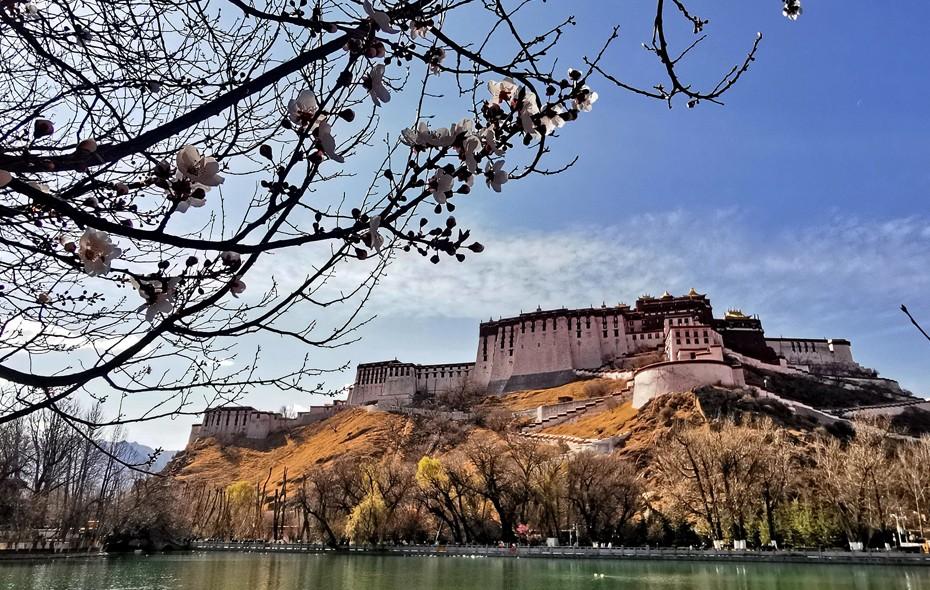 随着气温逐渐上升,位于布达拉宫背后的宗角禄康公园里,柳树吐出新绿,桃花朵朵盛开,湖水波光潋滟,吸引了广大市民前来踏青游玩。图为古城拉萨春日美景。记者 唐斌 摄