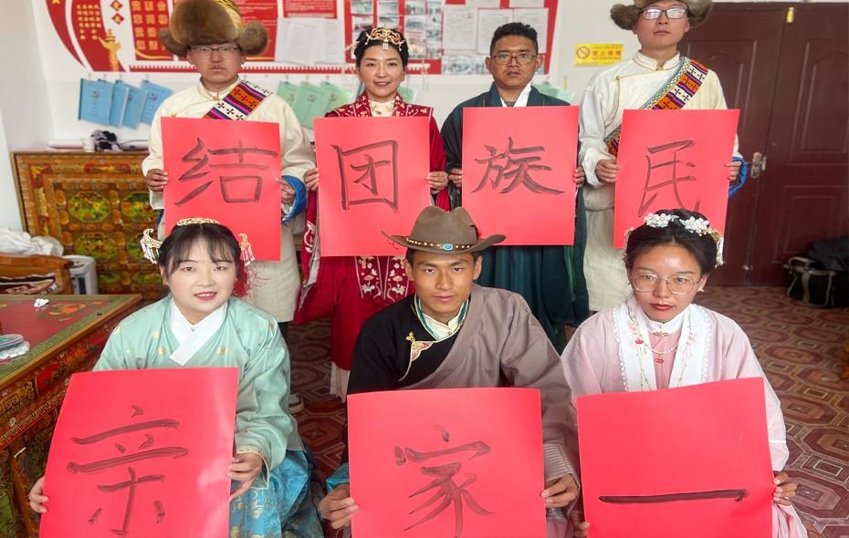 活动中,全体参与人员共同重温了入党誓词;以走秀的形式讲解了汉藏民族传统服饰的由来、种类等内容,并讲解了站、坐、行以及传统礼仪。最后,参与活动的全体人员共同书写完成了“民族团结一家亲”字样。