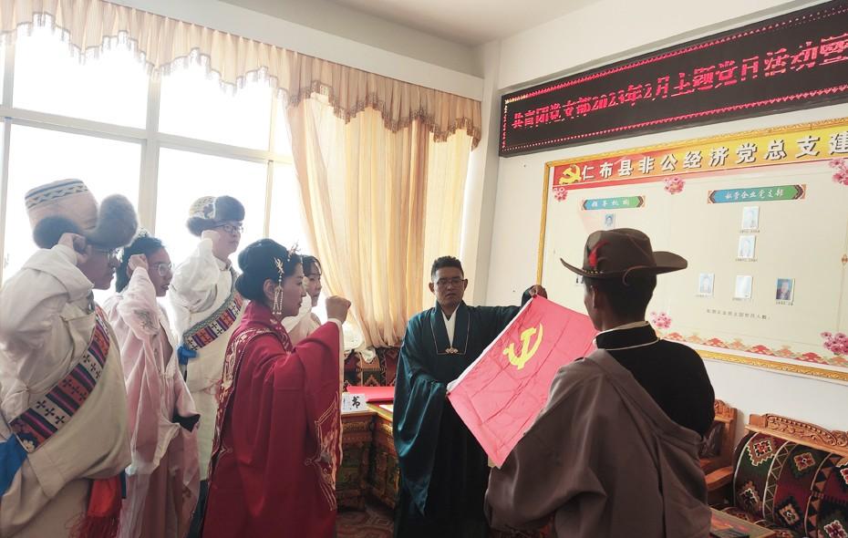 为深入学习贯彻党的二十大精神,认真贯彻落实习近平总书记关于加强和改进民族工作的重要思想,近日,共青团仁布县委党支部同西部计划志愿者共同开展了“民族团结一家亲”主题党日之民俗体验活动。图为参与人员共同重温入党誓词。
