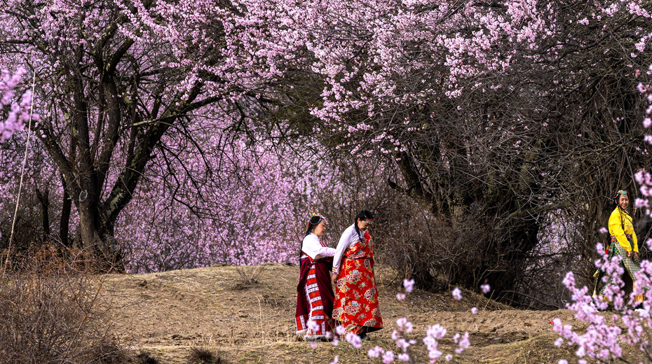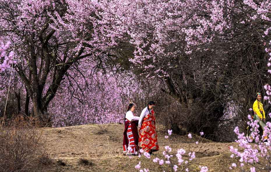 阳春三月,我区处处花开似锦,春意盎然,正是踏春赏花的好时节。图为游客在林芝市米林县索松村桃花林游览。记者 格桑吉美 摄