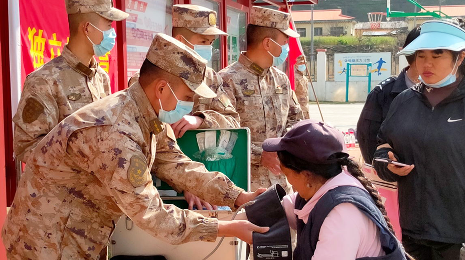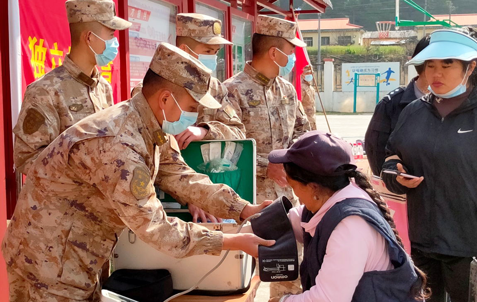 近日,下察隅镇布巴村党支部和结对共建部队党支部联合组建学雷锋志愿服务队,组织军地双方支部的党员60余人开展了“传承雷锋精神,军地携手共建美好家园”学雷锋纪念日暨军地共建主题党日活动。图为官兵为群众义诊。记者 谢筱纯 王珊 张猛 摄