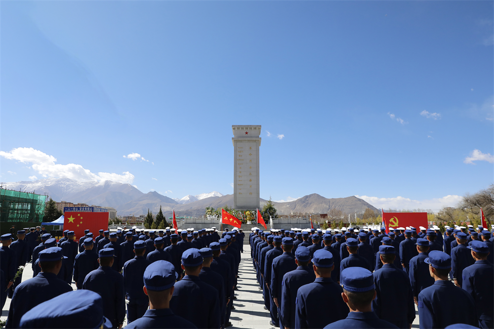 西藏森林消防总队党员干部在拉萨烈士陵园开展“缅怀革命先烈 传承红色基因”清明祭英烈主题党日活动。记者 桑邓旺姆 摄