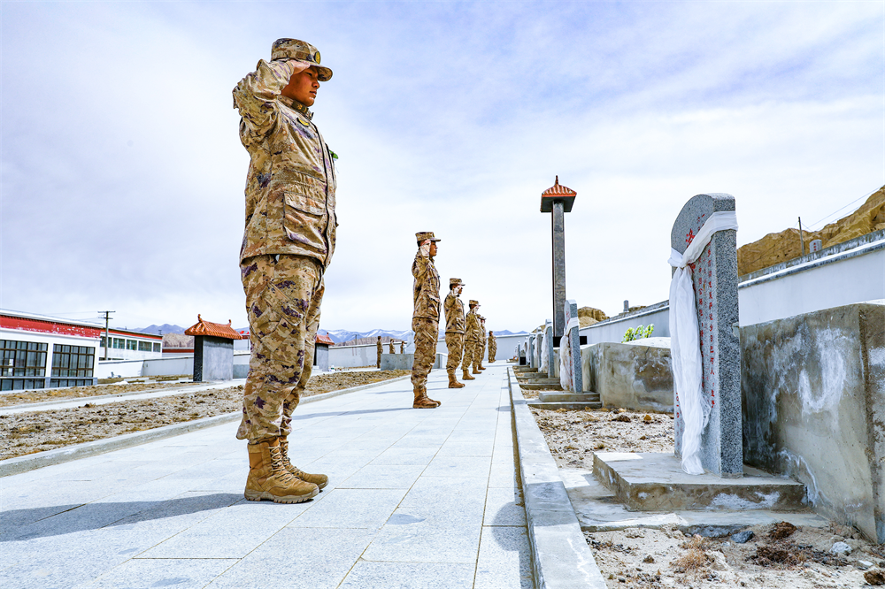 阿里军分区某边防团官兵向革命先烈敬军礼。 通讯员 刘晓东 记者 次仁平措 摄