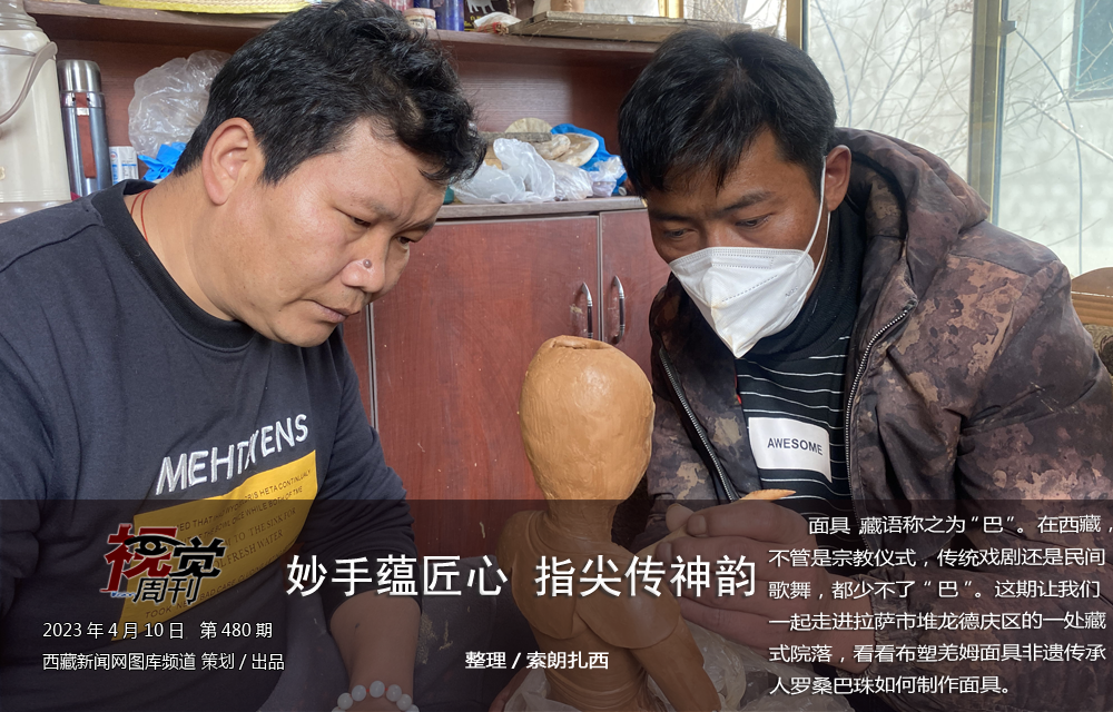 43岁的罗桑巴珠是堆龙德庆区桑木村5组村民,2019年被评为堆龙德庆区县级非物质文化遗产传承人,他制作的“布塑羌姆面具”被评为堆龙区级非物质文化遗产项目。2022年,堆龙布制面具制作技艺被评为第六批拉萨市级非物质文化遗产代表性项目。图为罗桑巴珠制作的布塑面具作品。