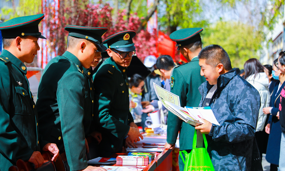今年4月15日是第八个全民国家安全教育日,为深入贯彻落实总体国家安全观,切实增强人民群众国家安全意识,15日,我区各地开展形式多样的国家安全教育主题活动,营造维护国家安全的浓厚氛围。拉萨警备区某团官兵为来往市民发放宣传资料。何琪 记者 唐斌 摄