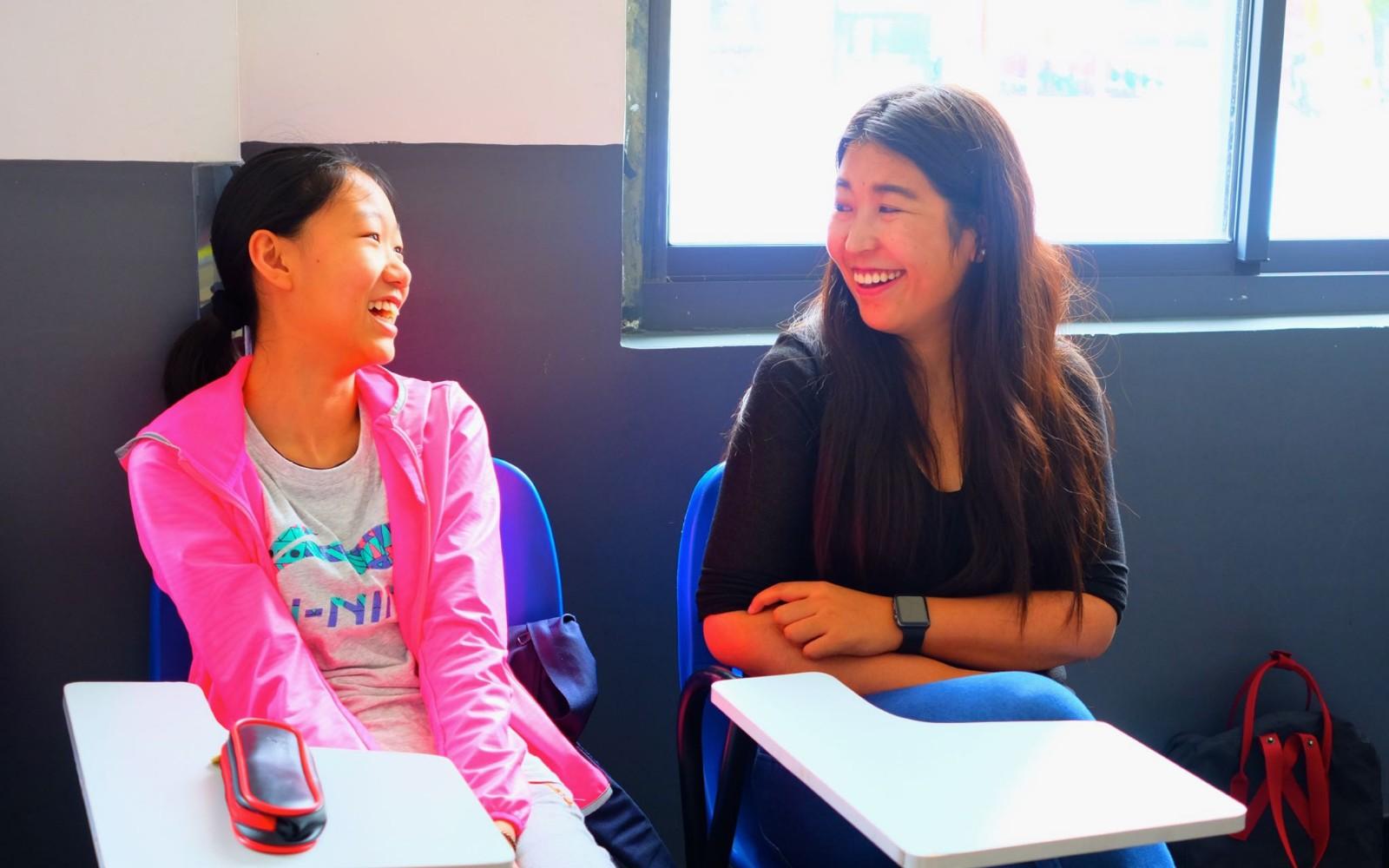 德庆玉珍团队的第一个项目名叫“青墨斋”,旨在通过教授阅读和写作相关的课程,帮助女孩提高自我认知。图为德庆玉珍与参加“青墨斋”项目的女孩愉快交谈。