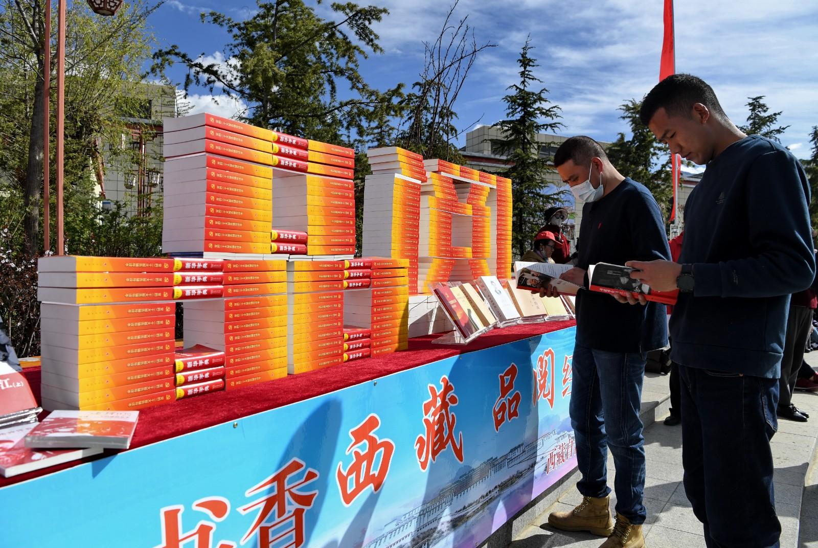 在拉萨城区随处见到各种读书活动,市民在愉悦中享受阅读之乐,品味书香之美。图为2023年度“书香西藏”全民阅读活动启动仪式现场,市民在翻阅书籍。记者 旦增兰泽 摄