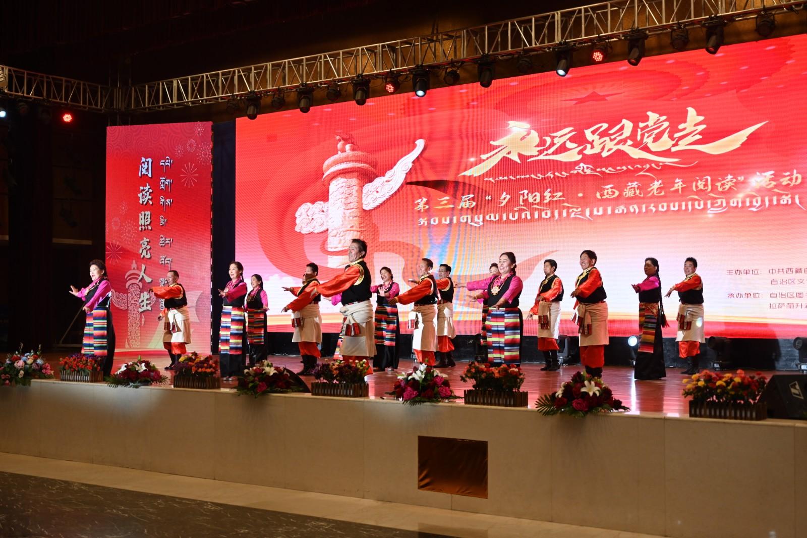 近日,全区各地陆续组织开展全民阅读活动主题晚会、诗歌朗诵、阅读演讲、知识竞赛等各具特色的阅读活动,进一步激发了西藏各族人民读书学习热潮。图为第三届“夕阳红·西藏老年阅读活动”现场。记者 次仁平措 摄