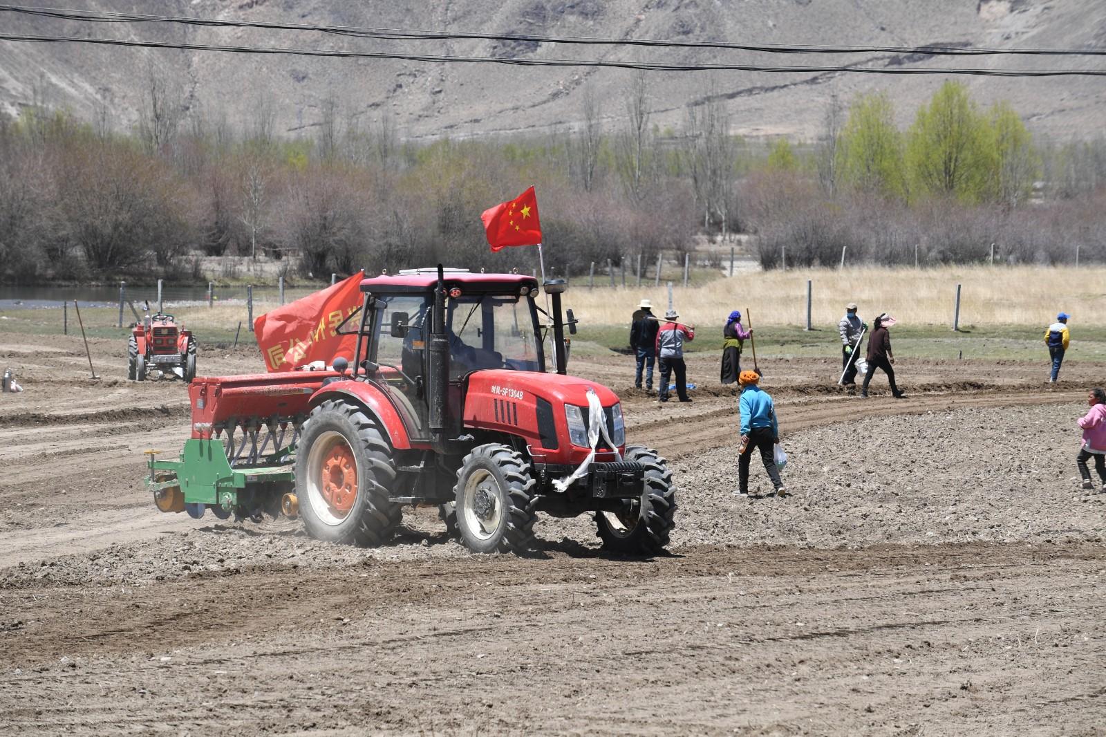 图为拉萨市达孜区的群众用机械翻土,为后续耕种做准备。记者 李洲 摄