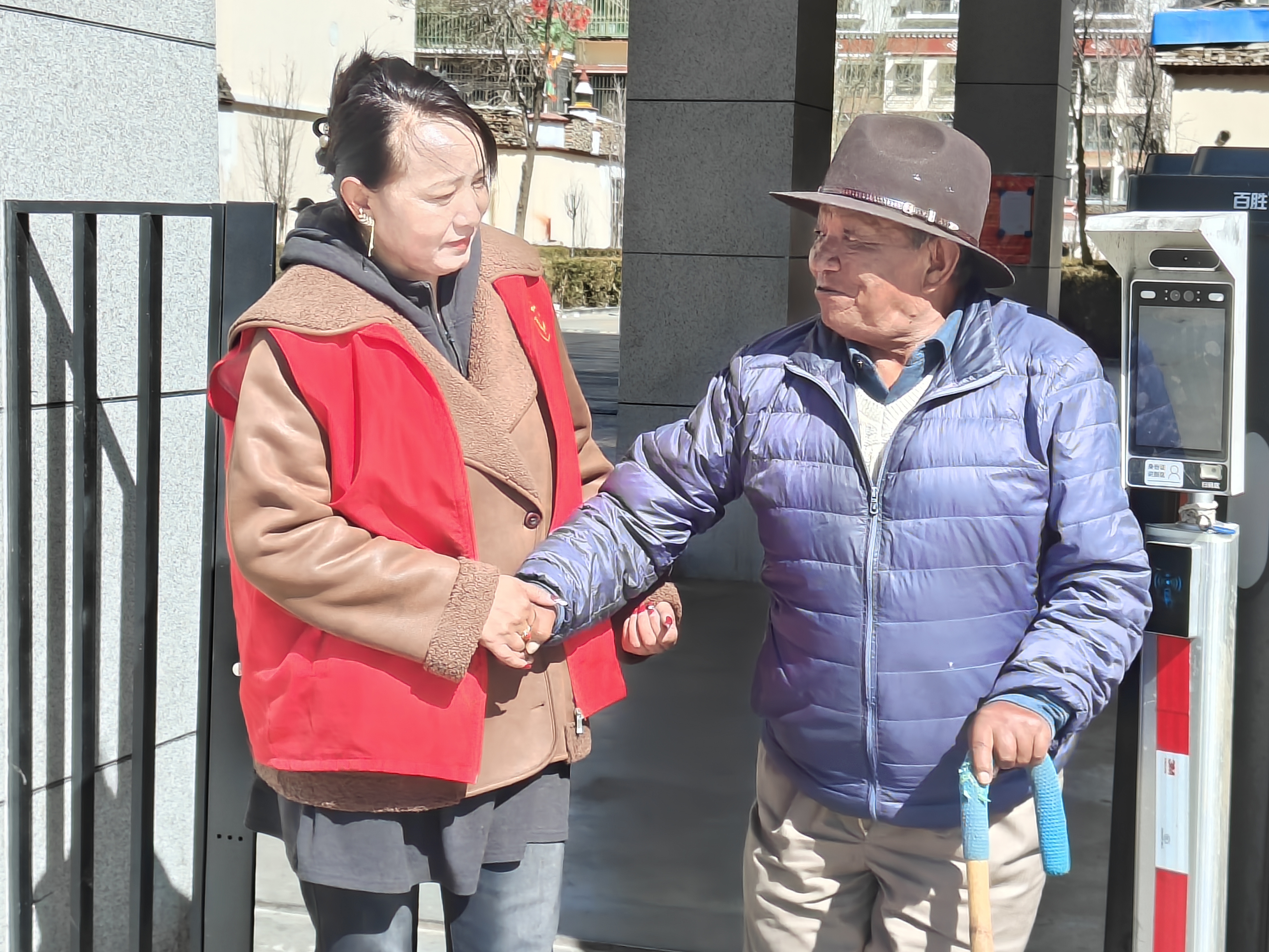 城关区纳金街道古泽村网格员为老人、儿童、残疾人等特殊群体提供个性化服务,定期上门帮助解决问题,让特殊群体深切感受到党和政府的关爱。图为古泽村网格员接送老人。