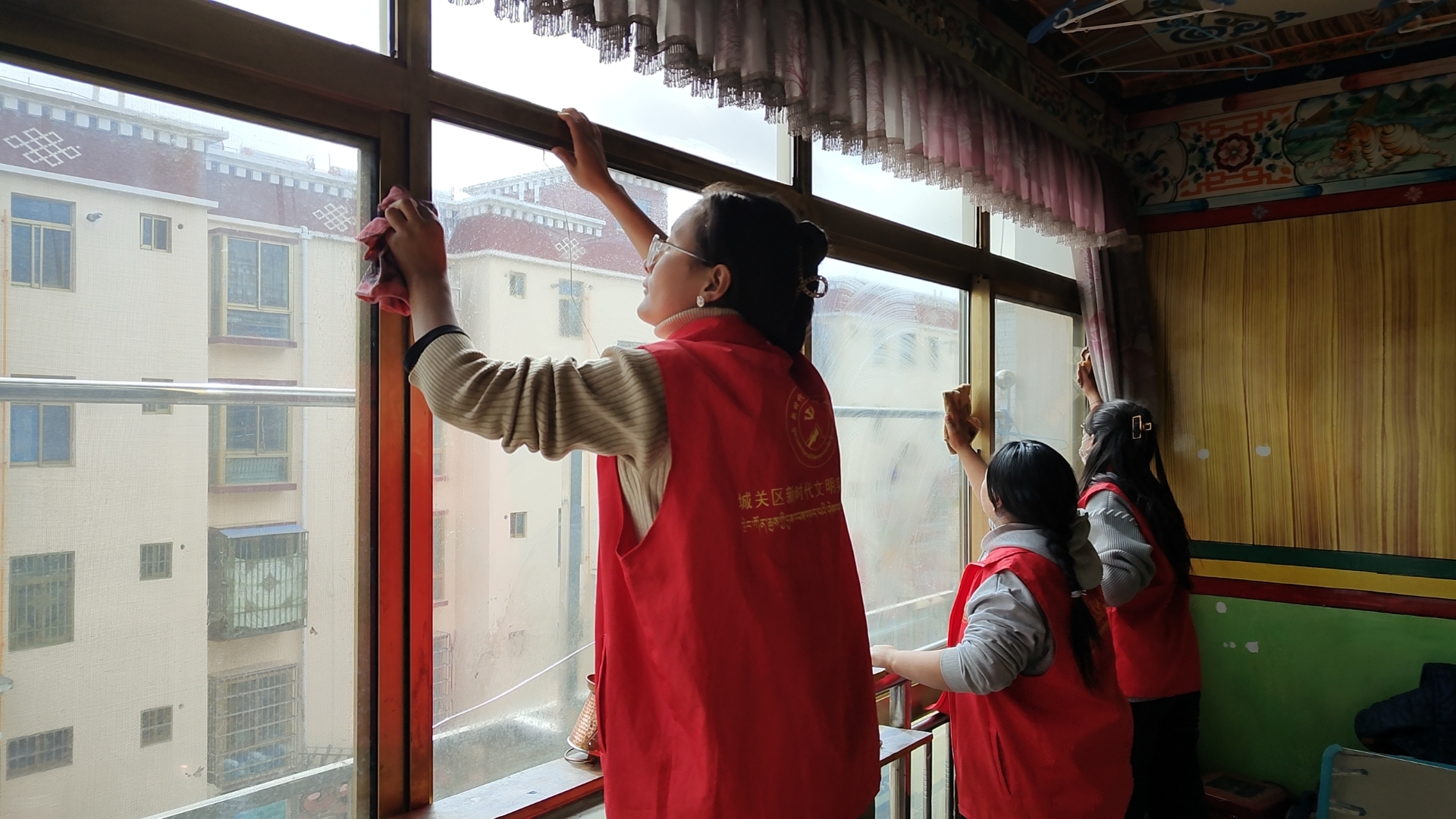 左图为古泽村网格员入户打扫卫生。记者 格桑伦珠 摄