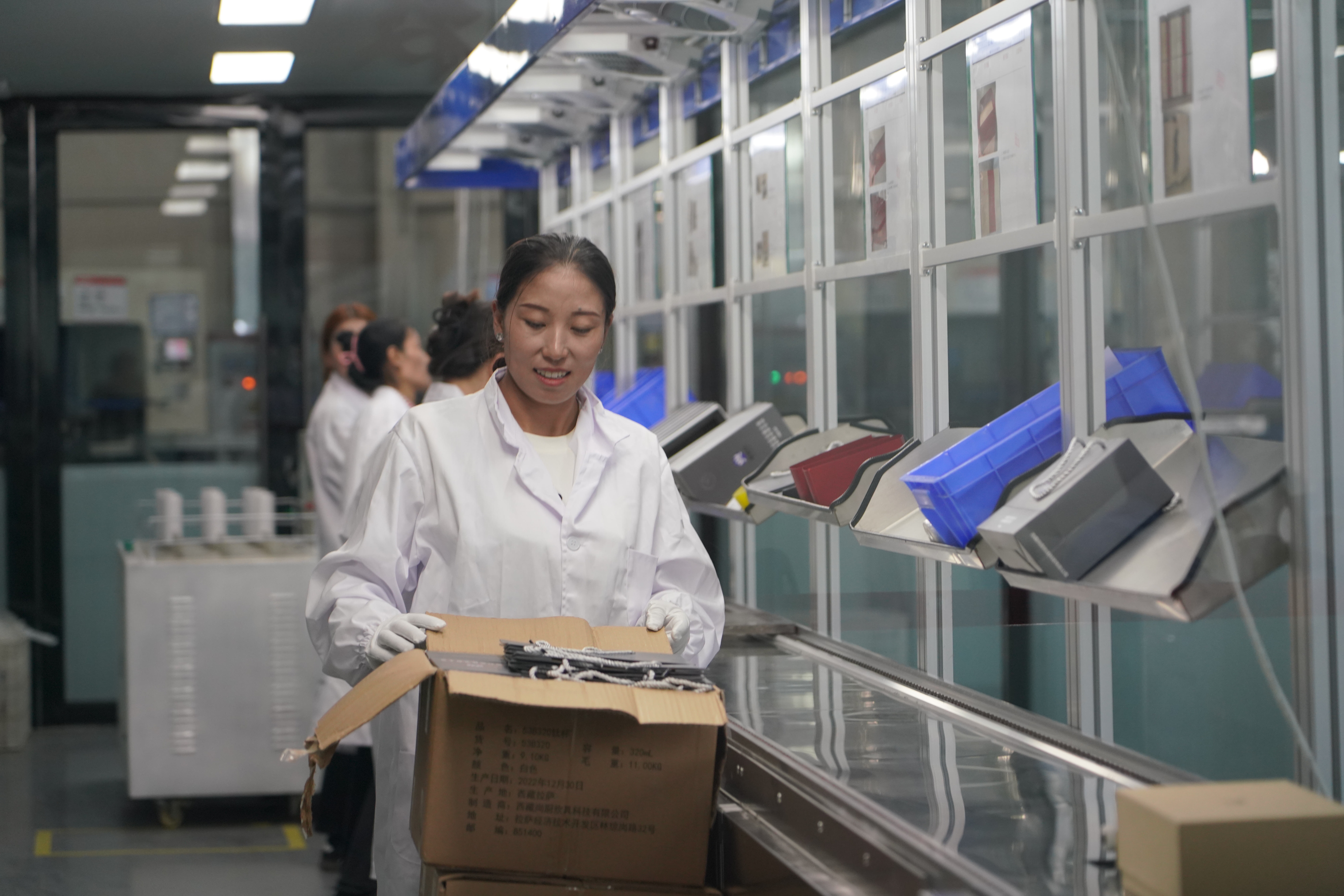 图为生产线上工人有条不紊地忙碌着。 记者 格桑伦珠 摄