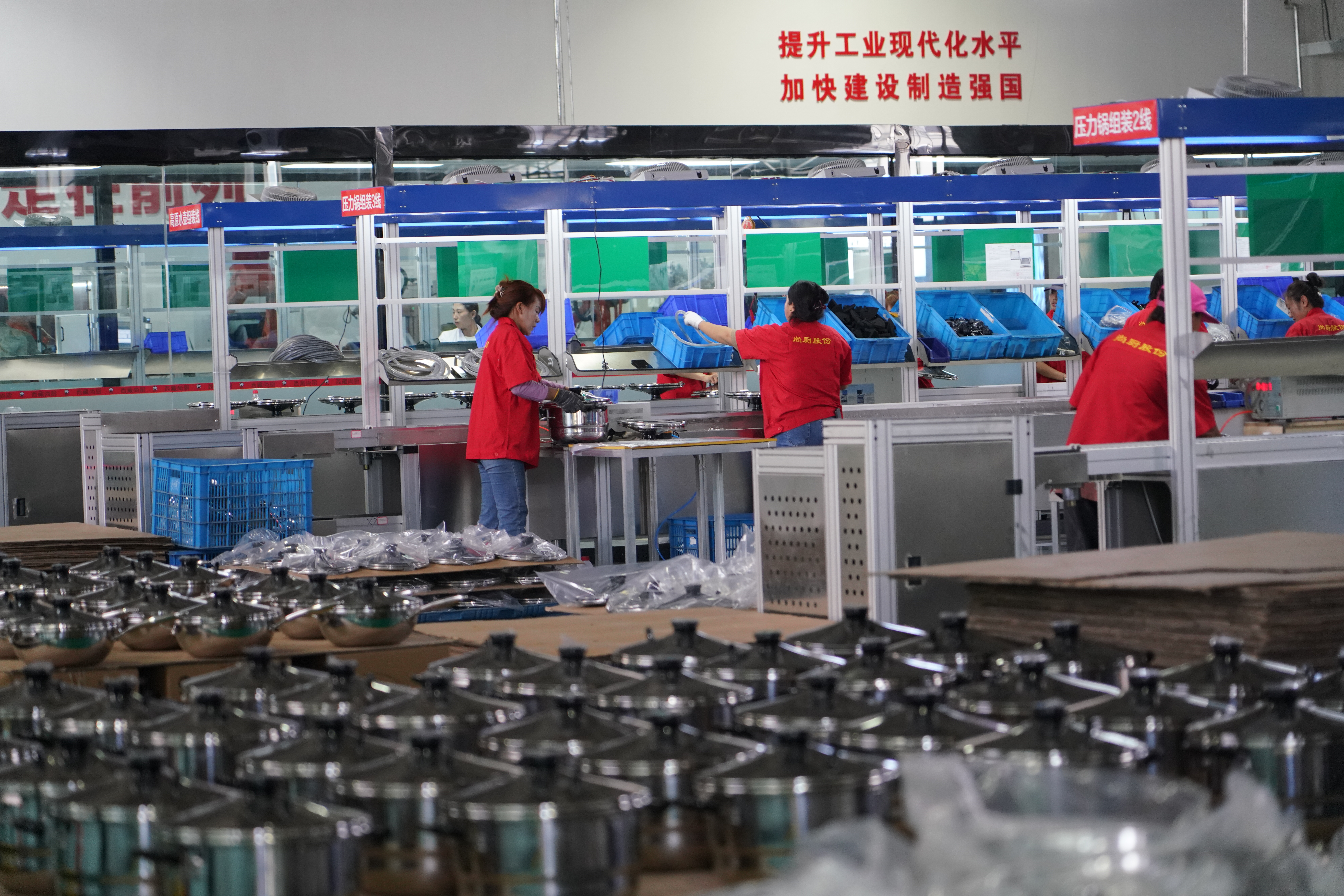 西藏尚厨炊具科技有限公司是西藏首家生产高原多功能系列炊具的企业,公司自成立以来,坚持安全第一,增强责任意识,强化责任担当,抓实抓细各项安全措施,努力构建特色鲜明、技术先进、品牌突出的现代化炊具产业体系,着力提升高原各族群众的生活品质。图为一位工人正在包装产品。