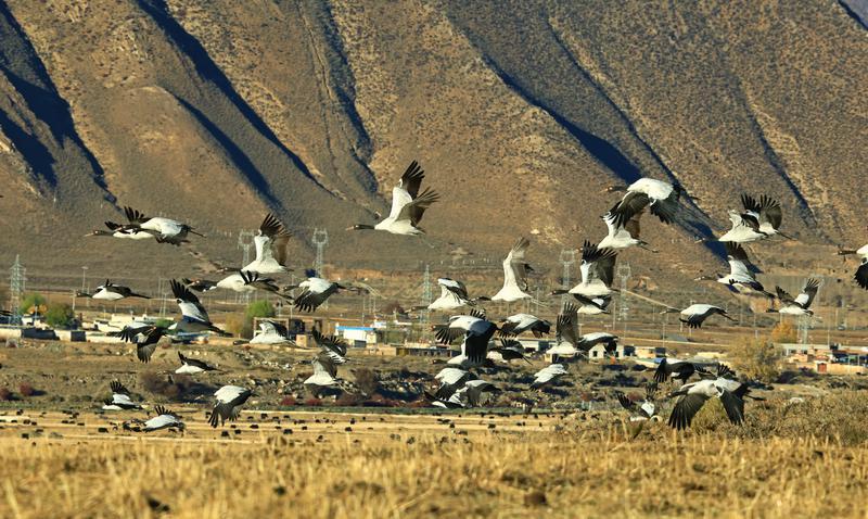 图为拉萨市墨竹工卡县唐加乡境内的黑颈鹤。本网记者 唐斌 摄 通讯员 洛克 摄