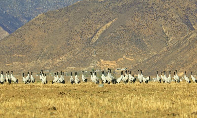 图为拉萨市墨竹工卡县唐加乡境内的黑颈鹤。本网记者 唐斌 通讯员 洛克 摄