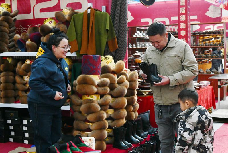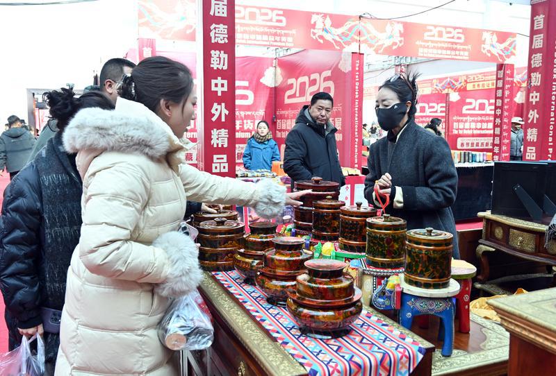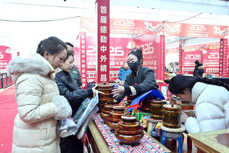 1月24日,2026首届德勒中外精品年货展在西藏自治区会展中心2号馆隆重开幕,展会中心一楼汇聚了风干牦牛肉、传统藏香、“卡塞”等本土特色,以及来自全国各地的生鲜果蔬、腊味坚果,方便市民一站式购齐所需。二楼则充满异域风情,尼泊尔手工饰品、巴基斯坦工艺品、法国红酒、特色卡垫等精选商品琳琅满目,让市民在家门口即可畅选国内外好物。