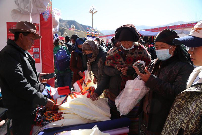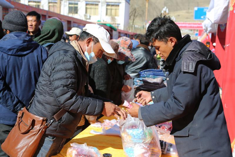 图为市民在展销活动现场购买年货。本网记者 王敏 通讯员 伦珠泽仁 摄