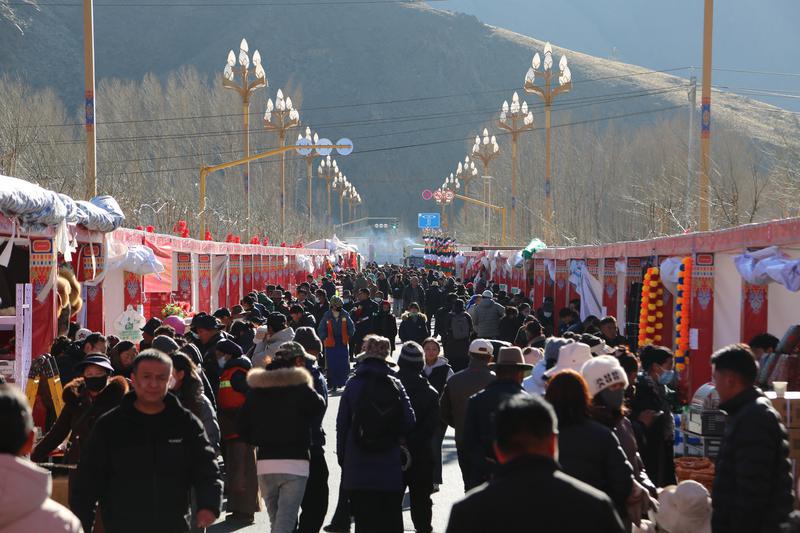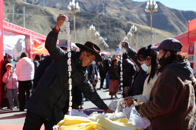 灵蛇辞旧岁,骏马迎新春。在春节、藏历新年即将来临之际,山南市琼结县2026年“幸福琼结·优享年货”促消费暨展销活动在朗热大道拉开序幕。据了解,此次促消费暨展销活动为期7天,吸引了103家商户入驻,其中包括73家本地商户、10家外来商户和20家流动商户,形成了本地特色与外来精品相互映衬的展销格局。展销商品种类丰富多样,达150余种,涵盖传统年货、特色农产品、手工艺品等多个领域。菜籽油、藏鸡蛋、糌粑、奶渣等高原特色农产品吸引了众多消费者驻足选购;藏式卡垫、藏装、文创产品等民族手工艺品展示了琼结深厚的文化底蕴;各类年货商品琳琅满目,洋溢着浓浓的年味。